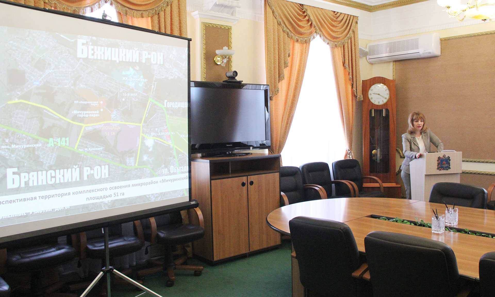 Далее директор департамента строительства рассказала о перспективной территории для комплексного освоения микрорайона «Мичуринский» площадью 51 га. Для этой территории должен быть решен, прежде всего, вопрос транспортной инфраструктуры. Между Управлением имущественных отношений Брянской области и ООО «Альянс» заключен договор аренды земельного участка площадью 51 га, расположенного в поселке Мичуринский. Участок предоставлен застройщику в целях комплексного освоения территории, в рамках которого предусматривается, в том числе жилищное строительство.