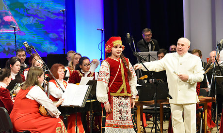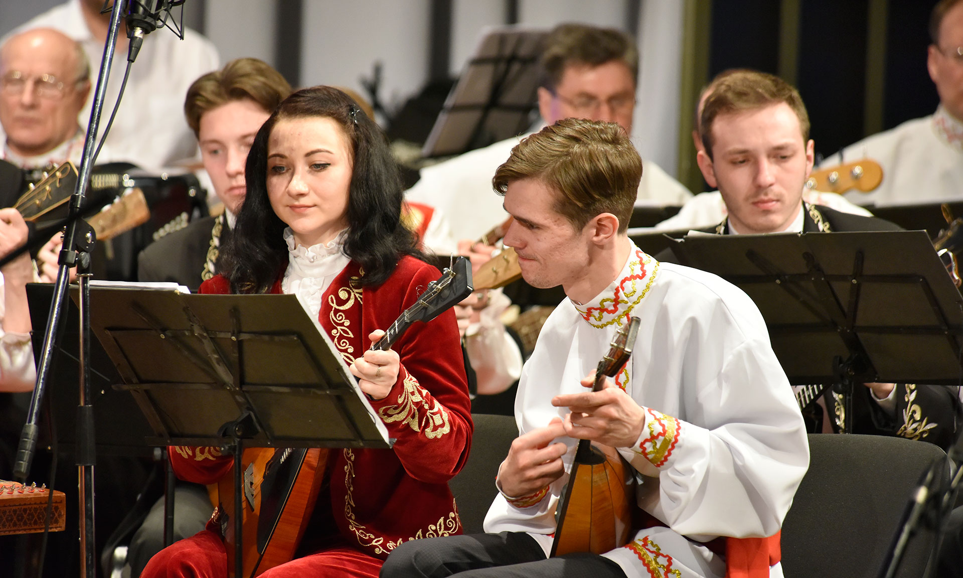 Продолжилось торжественное мероприятие, посвященное Дню единения Белоруссии и России, совместным праздничным концертом от оркестра народных инструментов Могилевской областной филармонии и Брянского городского оркестра народных инструментов «Таланты без границ».