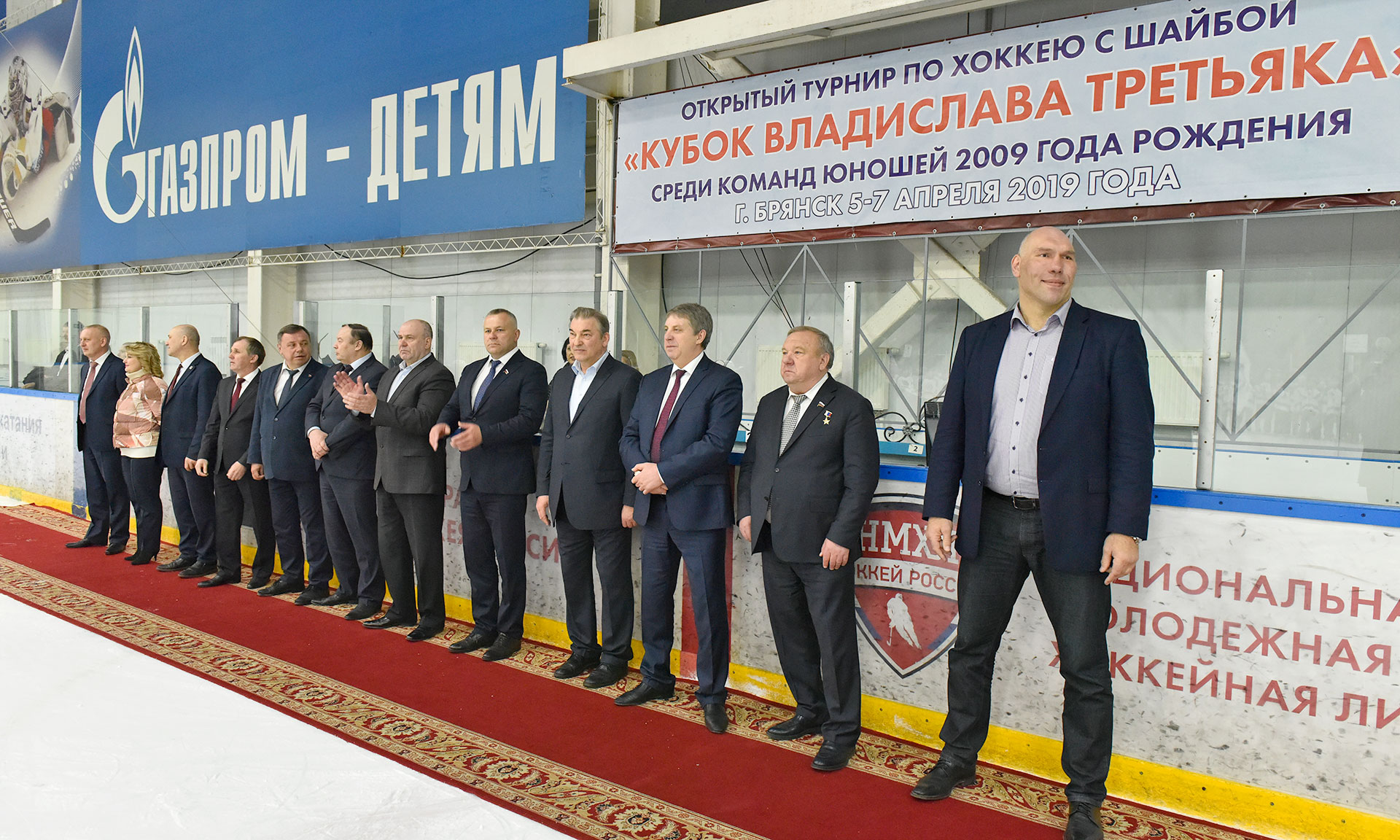 — Дорогие друзья, я рад приветствовать вас на открытии турнира «Кубок Владислава Третьяка». Это действительно для Брянска, для нашего подрастающего поколения важное событие. Это станет хорошим стартом для того, чтобы на Брянщине росли чемпионы хоккея, которые будут прославлять наш родной край и нашу великую страну. Хочу сказать огромное спасибо нашим гостям. Владислав Александрович Третьяк не только легенда Советского Союза, России, но и всего мира. Он стал лучшим хоккеистом двадцатого столетия, и нам приятно, что сегодня на Брянской земле присутствует трехкратный олимпийский чемпион, серебряный призер зимних олимпийских игр 1980 года, 10-кратный чемпион мира, президент Федерации хоккея России. Нам также приятно, что сегодня с нами еще один уважаемый человек, который проявил себя на другой ниве — на защите наших рубежей, нашей страны — это Владимир Анатольевич Шаманов, человек-легенда, Герой России, командующий самыми элитными войсками, ВДВ с 2009 по 2016 годы. Это очень важно, когда наши дети могут лично общаться с выдающимися людьми нашей страны. Людьми, которые посвятили всю свою жизнь служению своей стране. Вам, дорогие дети, сегодня есть на кого быть похожими, к чему стремиться, на кого равняться. И вы сегодня уже добились многого, вы уже стоите на льду. И теперь вам надо заниматься, стремиться к успехам. Желаю вам, чтобы вы были достойны быть похожими на наших гостей. И для этого мы делаем очень многое. Строим новые ледовые дворцы, достраиваем спортивные объекты. В следующем году у нас уже будет 15 ледовых арен! Идите всегда только вперед, чтобы наша Брянская область гордилась вами!