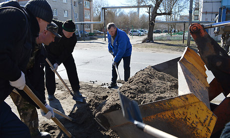 С хорошим настроением городской «экологический десант» в составе сотрудников администрации, ДЮСШ, работников культуры, образования, жителей города вышел на очередную уборку территории, вооружившись граблями, метлами и мешками. С раннего утра на центральной улице города с обочин дорог убирали и вывозили песок сотрудники «Жилкомхоза».