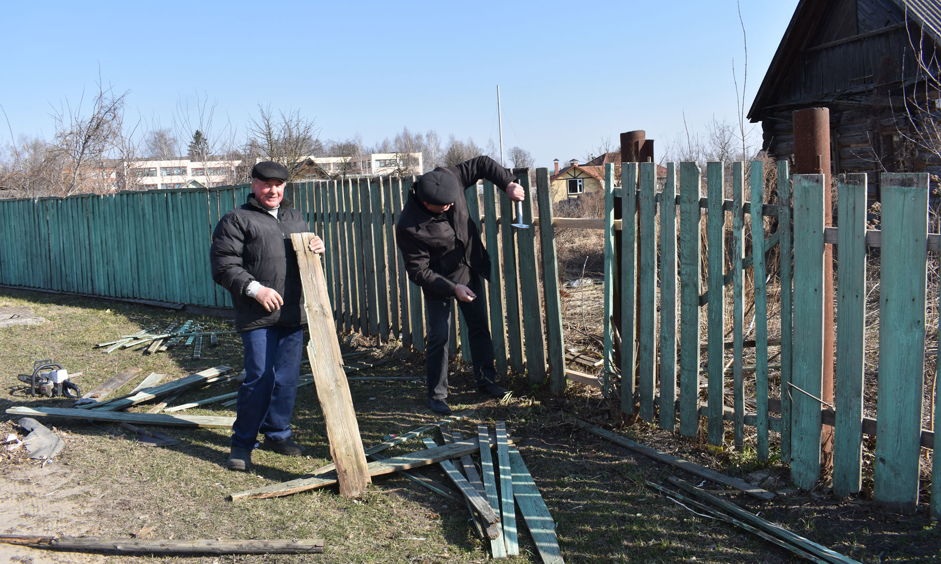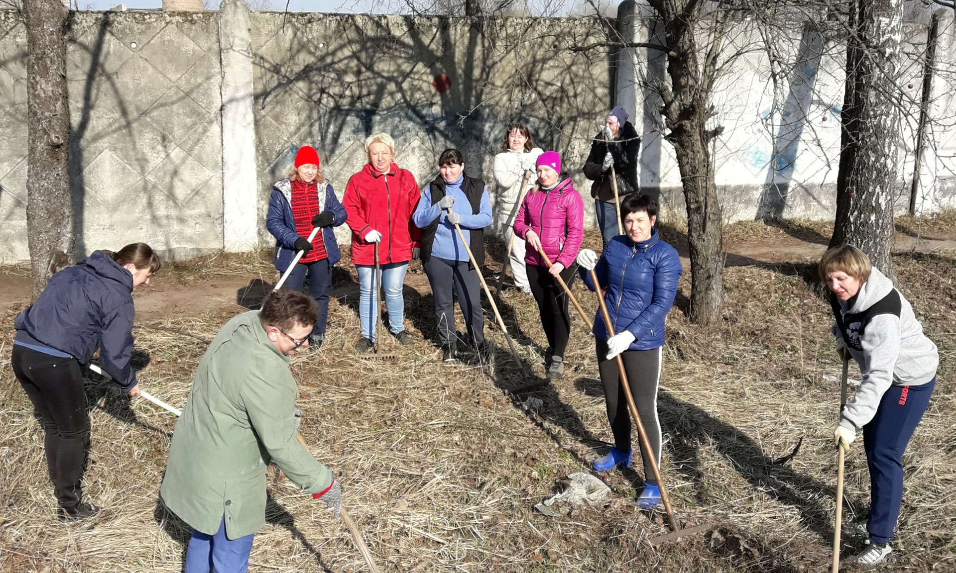 Местные жители также приняли участие в уборке и благоустройстве своих улиц, дворов — вооружившись метлами, граблями и вениками, убирали мусор возле своих домов.