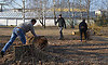 Работники бюджетных организаций п. Локоть работали на территории бывшего дворцового комплекса Великого князя Михаила Романова у фонтана. Здесь женщины убирали прошлогоднюю листву, сгребали её в кучи, а мужчины выпиливали и вырубали лишнюю поросль, сломанные в зимнее время ветви деревьев.