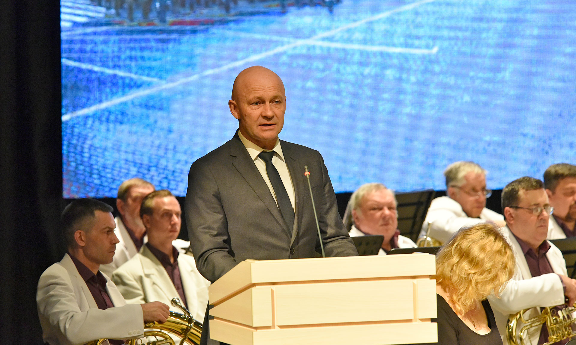 — Концерт, на котором мы с вами присутствуем, — особенное событие. Это возможность не только насладиться прекрасной музыкой, но и отдать дань памяти композитору, дирижеру, президенту «Духового общества» генерал-лейтенанту Валерию Михайловичу Халилову. Он всю душу вкладывал в ансамбль имени Александрова, которым руководил, и погиб вместе со своим коллективом. Их жизни в 2016 году унесла авиакатастрофа, которая произошла над Черным морем. В злополучном самолете, который должен был доставить музыкантов в Сирию, находились и наши брянские ребята — Дмитрий Литвяков и Борис Сулейманов. Они были солистами ансамбля и летели поддержать наших солдат. Мы не забудем их талант и верность своему долгу. Валерий Михайлович Халилов и его ансамбль навсегда стали частью «Бессмертного оркестра», музыка которого всегда будет звучать в наших сердцах.