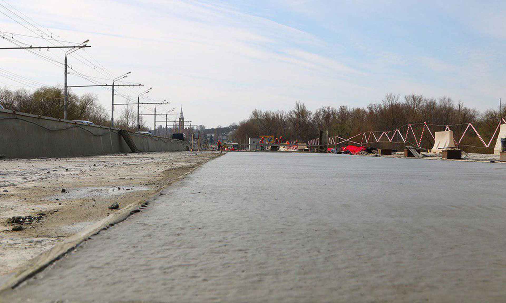 Сейчас из 72 новых балок смонтировано 60 — осталось уложить 2 пролета. Также продолжается армирование и бетонирование межбалочных швов, за неделю выполнено еще 2 пролета. В общей сложности швы готовы на 8 мостовых пролетах из 12. На этой неделе строители приступили к формированию тротуара, сейчас производится монтаж карнизных блоков. Также начались работы по сопряжению моста с насыпью со стороны Советского района.