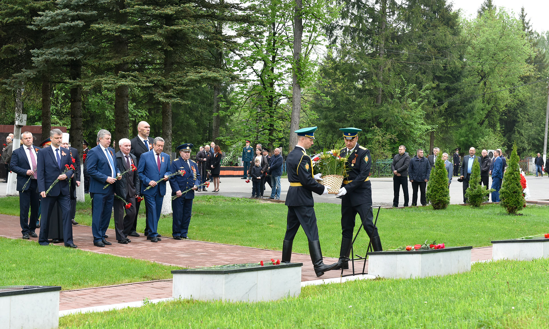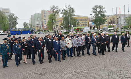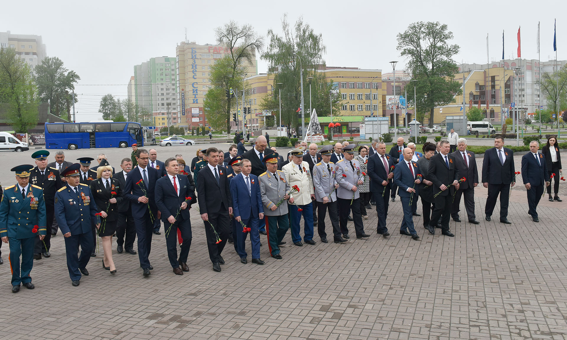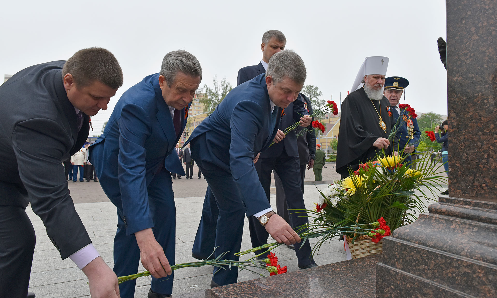 В официальной церемонии возложения приняли участие Губернатор Брянской области Александр Богомаз, председатель Брянской областной Думы Владимир Попков, главный федеральный инспектор по Брянской области Андрей Дьячук, митрополит Брянский и Севский Александр, председатель Брянского областного Совета ветеранов войны, труда, Вооруженных Сил и правоохранительных органов Сергей Панков, Герой Социалистического труда, Почетный гражданин Брянской области — Георгий Константинович Лобус, Герой Советского Союза Иван Андреевич Кашин, Герой Российской Федерации Александр Постоялко, глава города Конина (Республика Польша) -Петр Корытковски, первый заместитель председателя комитета по экологии и охране окружающей среды Государственной Думы Федерального Собрания Российской Федерации Николай Валуев, депутат Государственной Думы Федерального Собрания Российской Федерации Валентин Суббот, прокурор Брянской области Александр Войтович, начальник управления ФСБ России по Брянской области Николай Рудь, начальник УМВД России по Брянской области Владислав Толкунов, председатель Брянского областного суда Евгений Быков, председатель арбитражного суда Брянской области Евгений Егоров, начальник Управления Федеральной службы войск национальной гвардии Российской Федерации по Брянской области Олег Набока, начальник Главного управления МЧС России по Брянской области Вадим Уваркин, исполняющий обязанности руководителя следственного управления Следственного комитета Российской Федерации по Брянской области Евгений Завалов, начальник Брянской таможни Игорь Ерошин, начальник управления Федеральной службы исполнения наказаний по Брянской области Леонид Сагалаков, военный комиссар Брянской области Андрей Соломенцев, председатель Брянской областной общественной организации ветеранов войны и военной службы Виктор Андреев, вице-губернатор Брянской области Александр Резунов, заместители Губернатора Брянской области, почетный председатель РОО «Брянское землячество» в г. Москве Виктор Тимощенко, председатель Правления РОО «Брянское Землячество» в Москве Татьяна Наумова, глава города Брянска Александр Хлиманков, глава Брянской городской администрации Александр Макаров, руководители органов исполнительной власти Брянской области, территориальных федеральных органов власти в Брянской области, депутаты Брянской областной Думы и Брянского городского Совета народных депутатов, представители РОО «Брянское землячество в Москве», делегация города Конина Республики Польша, жители Брянска, представители политических партий и общественных объединений, гости, заместители Губернатора Брянской области, депутаты Брянской областной Думы.