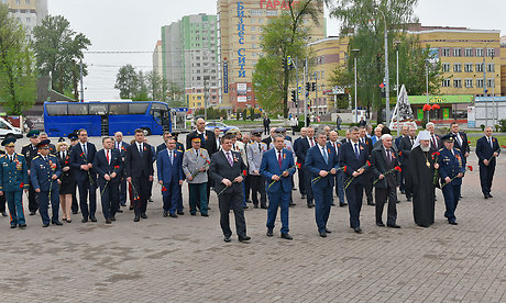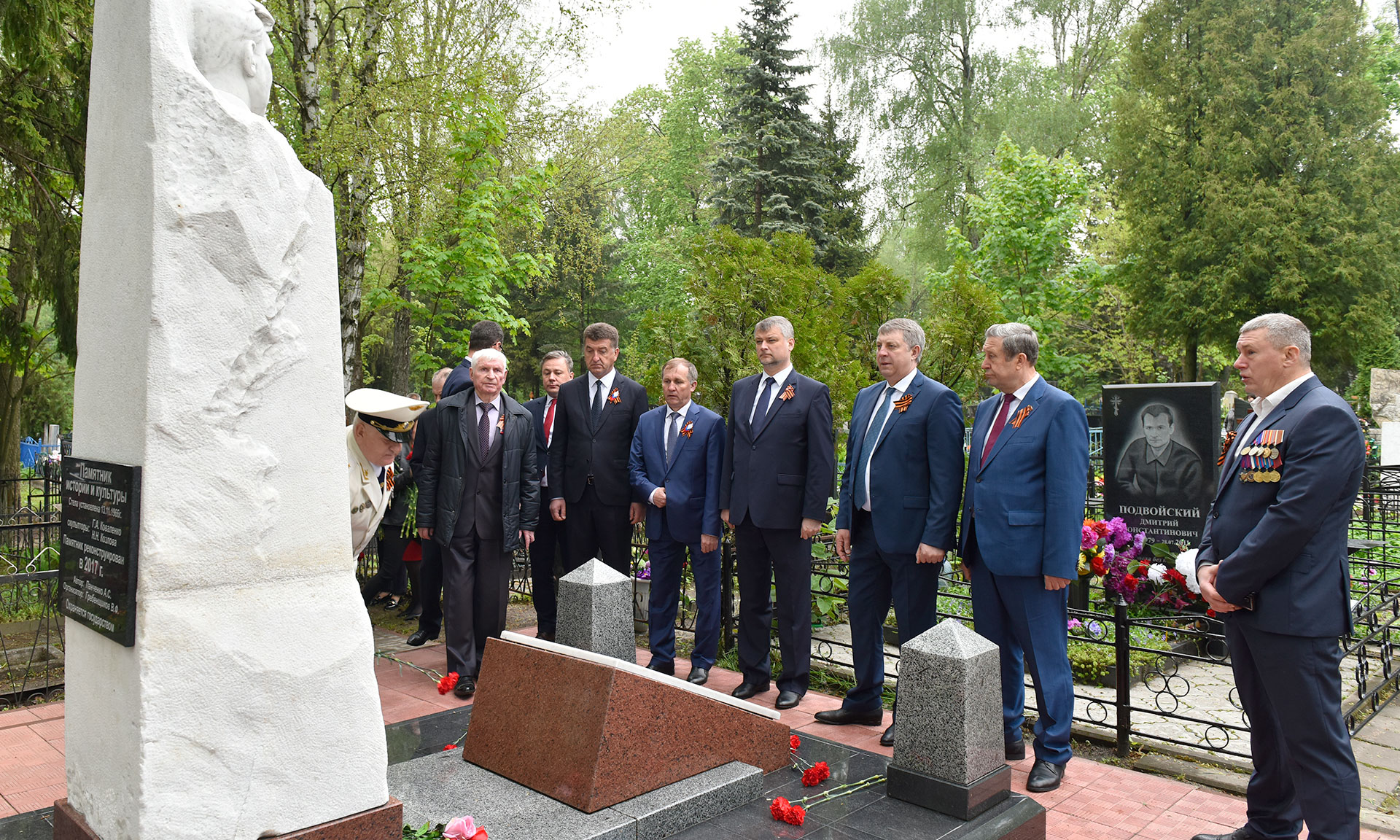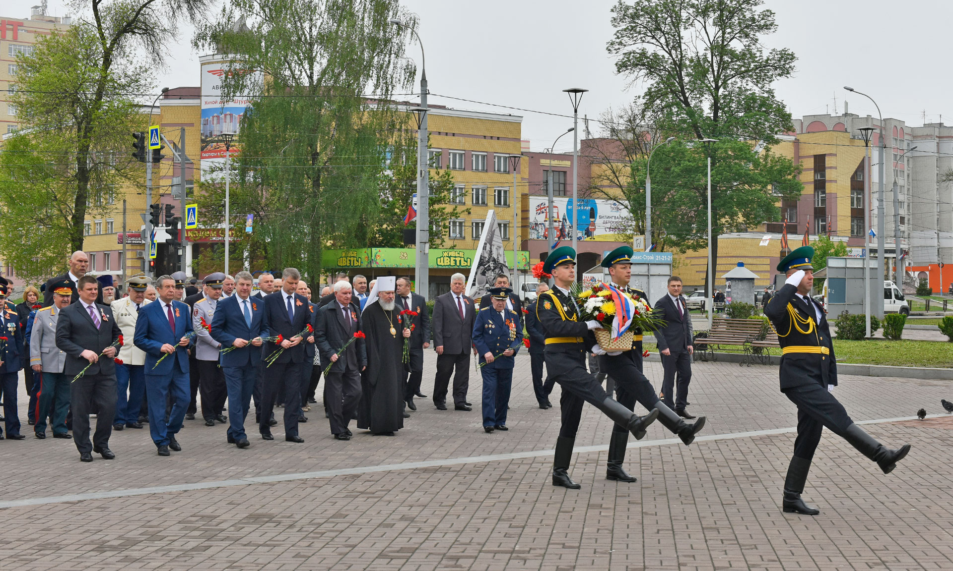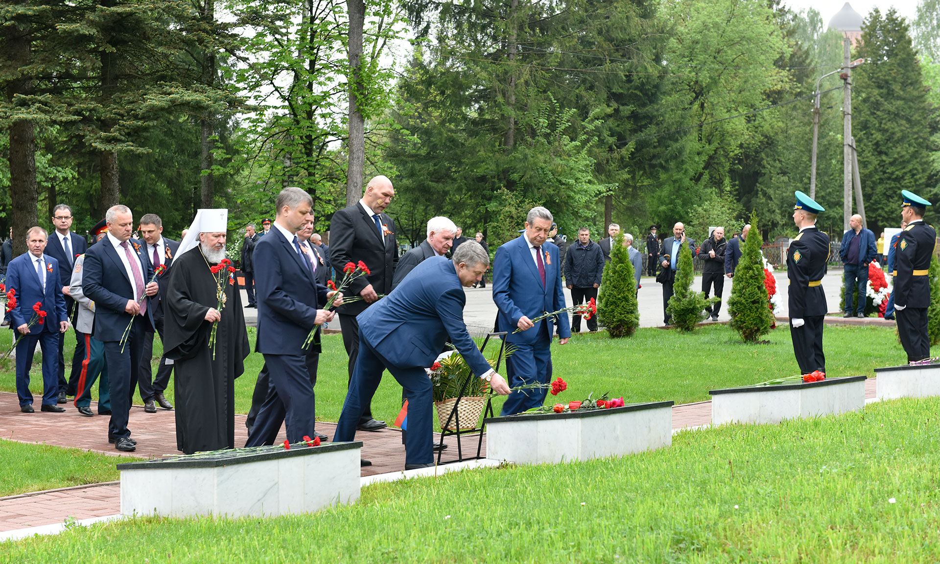 В официальной церемонии возложения приняли участие Губернатор Брянской области Александр Богомаз, председатель Брянской областной Думы Владимир Попков, главный федеральный инспектор по Брянской области Андрей Дьячук, митрополит Брянский и Севский Александр, председатель Брянского областного Совета ветеранов войны, труда, Вооруженных Сил и правоохранительных органов Сергей Панков, Герой Социалистического труда, Почетный гражданин Брянской области — Георгий Константинович Лобус, Герой Советского Союза Иван Андреевич Кашин, Герой Российской Федерации Александр Постоялко, глава города Конина (Республика Польша) -Петр Корытковски, первый заместитель председателя комитета по экологии и охране окружающей среды Государственной Думы Федерального Собрания Российской Федерации Николай Валуев, депутат Государственной Думы Федерального Собрания Российской Федерации Валентин Суббот, прокурор Брянской области Александр Войтович, начальник управления ФСБ России по Брянской области Николай Рудь, начальник УМВД России по Брянской области Владислав Толкунов, председатель Брянского областного суда Евгений Быков, председатель арбитражного суда Брянской области Евгений Егоров, начальник Управления Федеральной службы войск национальной гвардии Российской Федерации по Брянской области Олег Набока, начальник Главного управления МЧС России по Брянской области Вадим Уваркин, исполняющий обязанности руководителя следственного управления Следственного комитета Российской Федерации по Брянской области Евгений Завалов, начальник Брянской таможни Игорь Ерошин, начальник управления Федеральной службы исполнения наказаний по Брянской области Леонид Сагалаков, военный комиссар Брянской области Андрей Соломенцев, председатель Брянской областной общественной организации ветеранов войны и военной службы Виктор Андреев, вице-губернатор Брянской области Александр Резунов, заместители Губернатора Брянской области, почетный председатель РОО «Брянское землячество» в г. Москве Виктор Тимощенко, председатель Правления РОО «Брянское Землячество» в Москве Татьяна Наумова, глава города Брянска Александр Хлиманков, глава Брянской городской администрации Александр Макаров, руководители органов исполнительной власти Брянской области, территориальных федеральных органов власти в Брянской области, депутаты Брянской областной Думы и Брянского городского Совета народных депутатов, представители РОО «Брянское землячество в Москве», делегация города Конина Республики Польша, жители Брянска, представители политических партий и общественных объединений, гости, заместители Губернатора Брянской области, депутаты Брянской областной Думы.