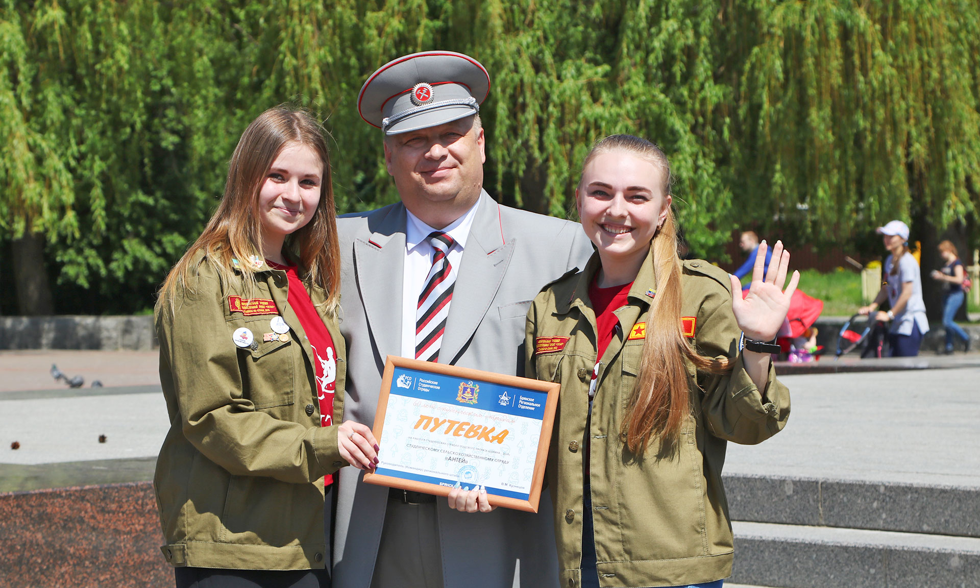 Гости вручили представителям студенческих отрядов путевки на участие в проекте «Целина-2019». Ребята в свою очередь передали им фирменные куртки-бойцовки со словами: «В бойцовке, значит, свой!» После коллективного фотографирования участники мероприятия высадили на территории Центрального парка культуры и отдыха имени 1000-летия города Брянска саженцы рябин.