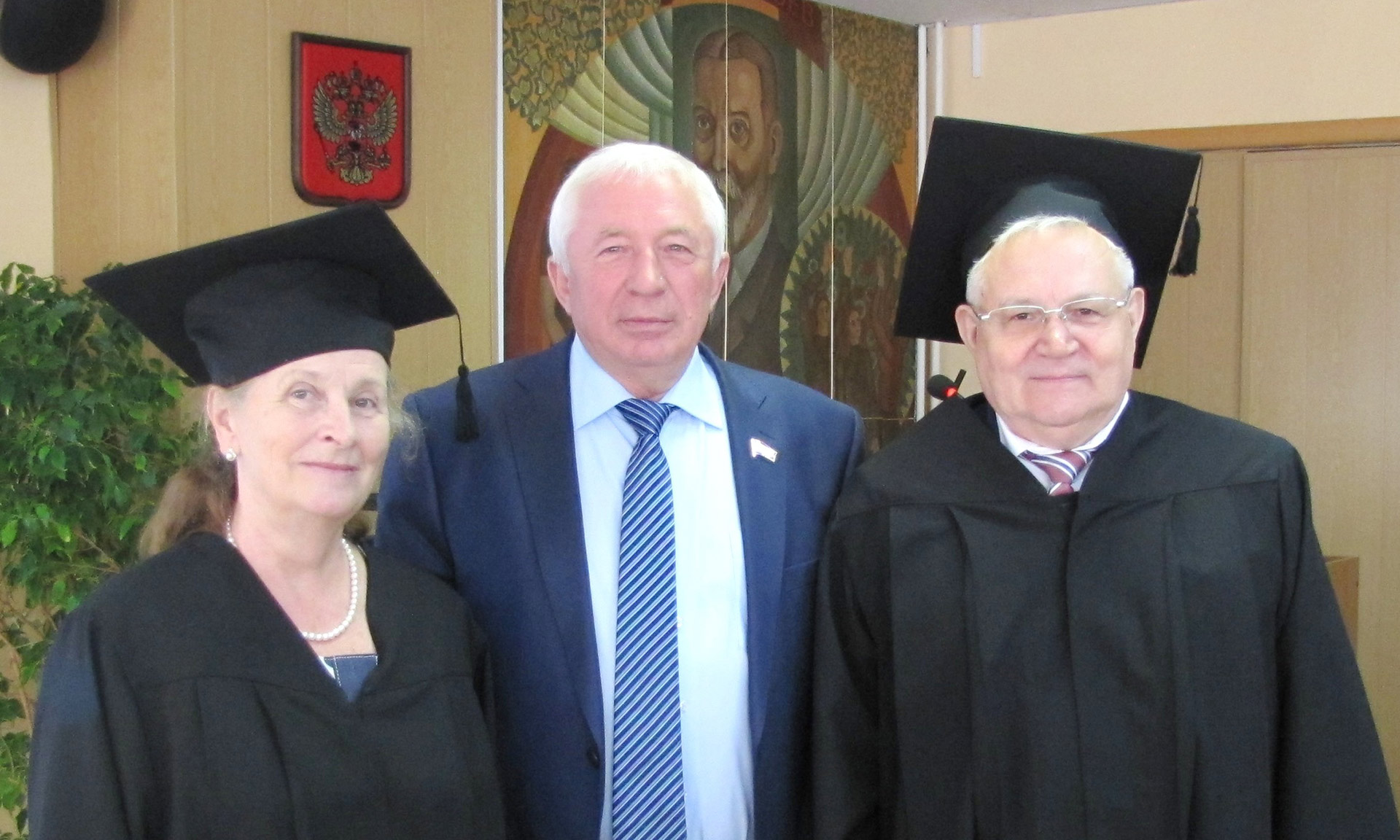 Приятным моментом стало вручение дипломов и профессорской мантии двум вновь избранным Почётным профессорам Брянского ГАУ, которыми по решению учёного совета вуза стали Виктор Бердышев и Надежда Скороходова.