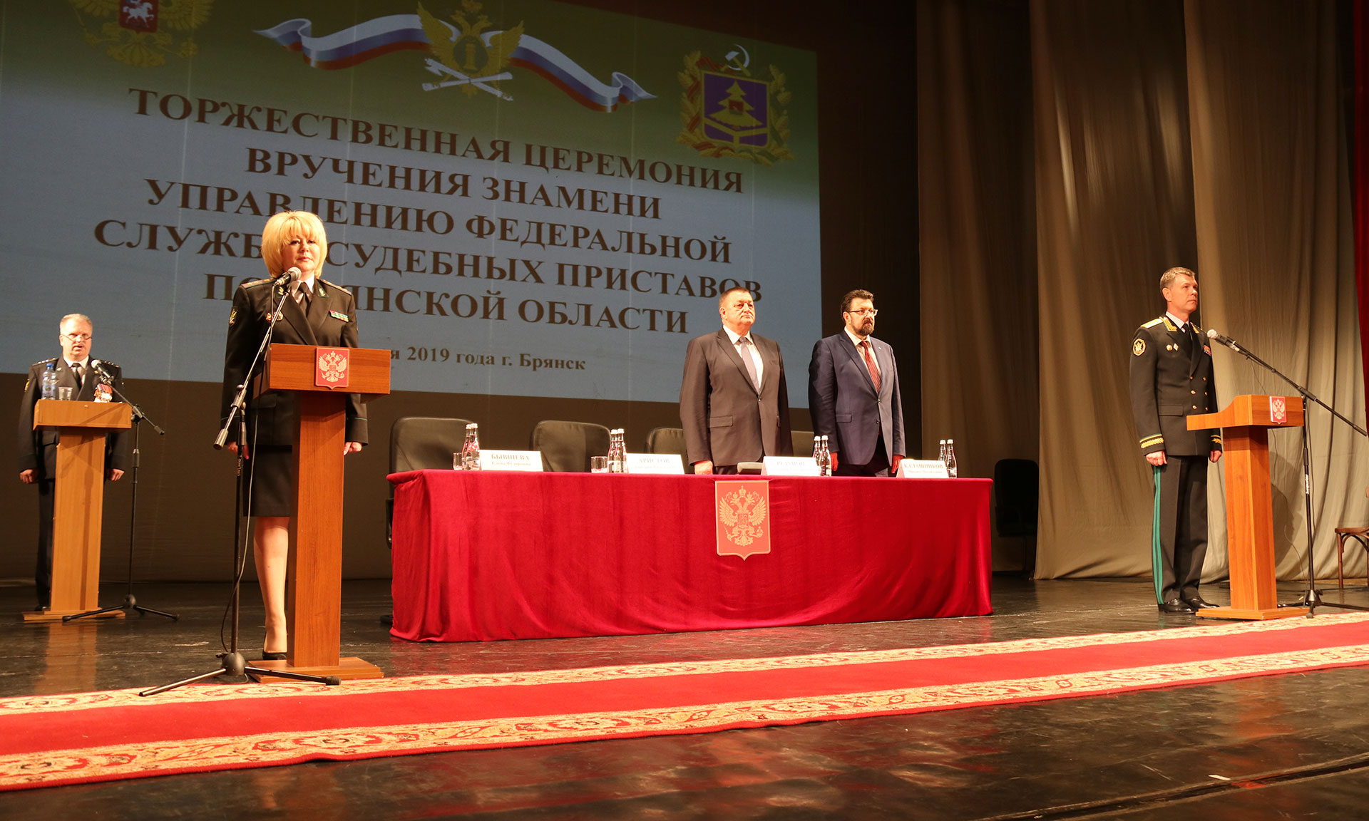 30 мая в Брянском областном театре драмы имени А. К. Толстого состоялась торжественная церемония вручения Знамени Управлению Федеральной службы судебных приставов по Брянской области.