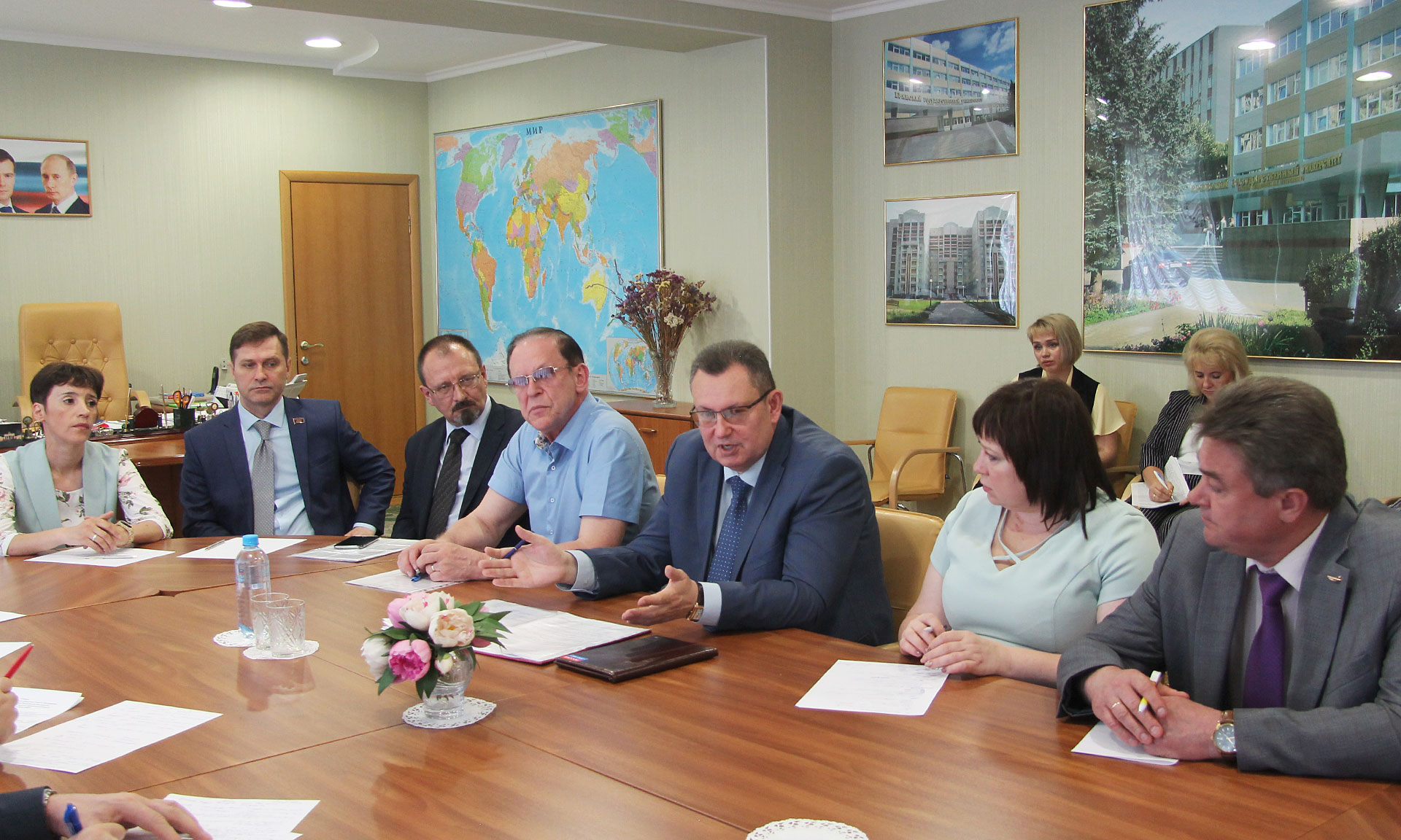 В рамках встречи с профессорско-преподавательским сообществом региона был заслушан вопрос о состоянии и перспективах развития вузовской науки, взаимодействии с реальным сектором экономики региона.