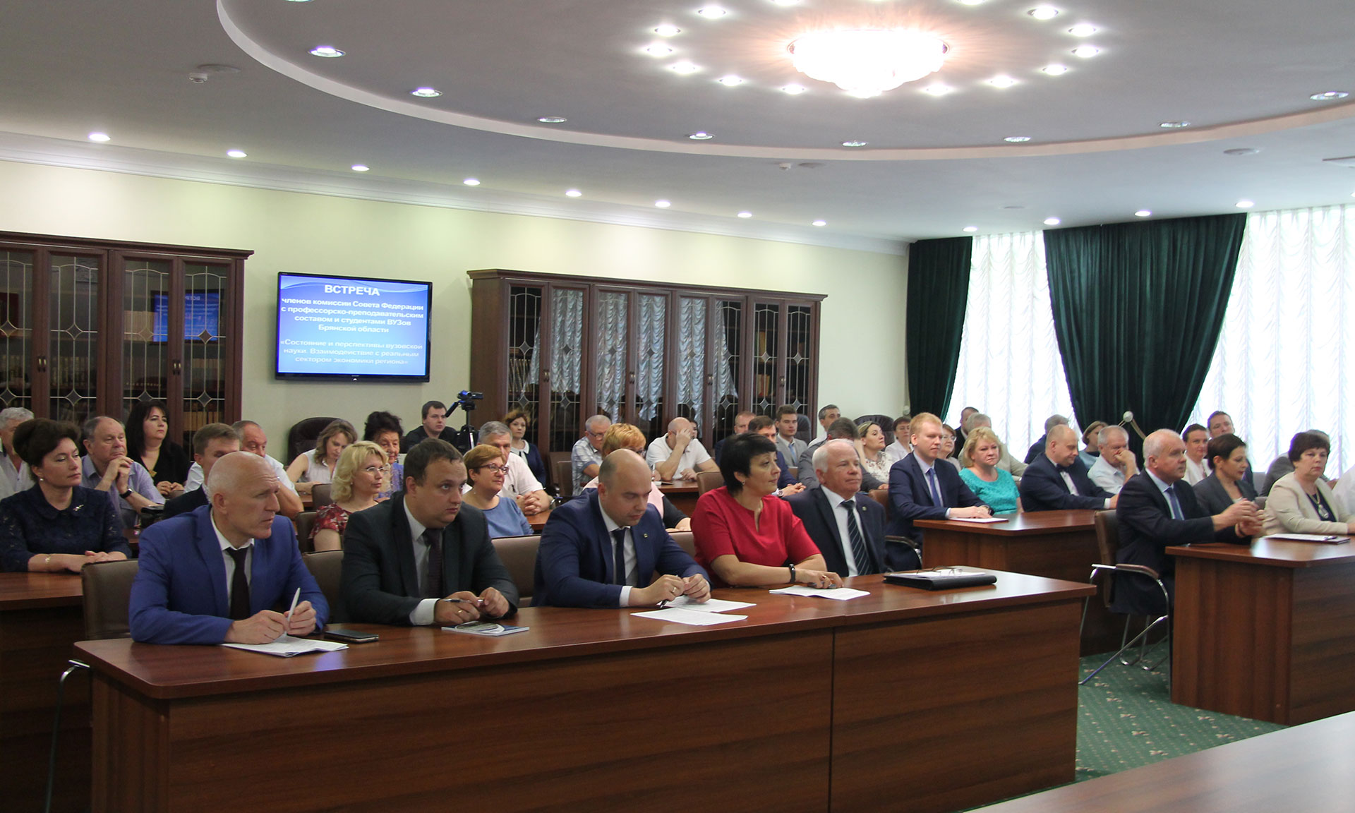 Обращаясь к членам Совета Федерации Ольге Старостиной и Валерию Маркову, ректор Брянского госуниверситета Андрей Антюхов внес предложение обсудить на федеральном уровне возможность принятия Федеральной целевой программы по поддержке региональных вузов.