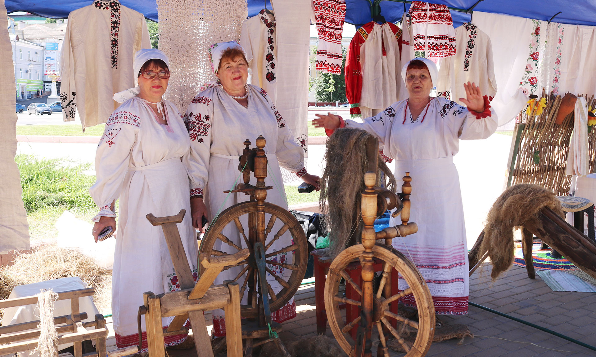Многолюдно было и на площадке, где демонстрировались уникальные творческие работы, выполненные в разнообразных техниках народными умельцами. Разнообразные изделия из бисера, картины (вышитые и нарисованные), рушники, куклы-обереги и многое другое по достоинству оценили жители и гости Брянска.
