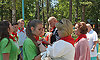 Детская пионерская дружина 1 оздоровительной тематической смены «Пионерское лето 2.0» вручила Валентину Субботу и Татьяне Кулешовой символы детской пионерской организации — красный галстук и памятный значок лидеров смены. Отдыхающие и представители педагогического состава рассказали о реализуемом образовательно-просветительском проекте «Орлятский круг» по разучиванию и исполнению лагерных и пионерских песен. Представили гостям новую, оборудованную отрядную костровую, сделанную вожатыми студенческих педагогических отрядов Брянского регионального отделения МООО «Российские Студенческие Отряды», открытую в День защиты детей на старте юбилейного лета 2019 года.