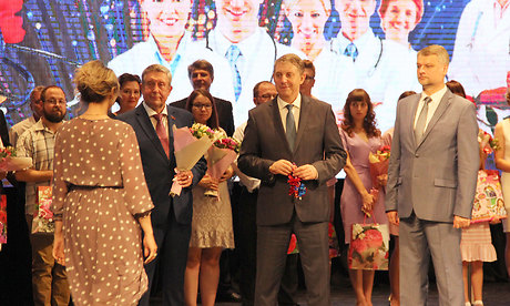 В этом году на покупку жилья для врачей из областного бюджета выделено более 700 млн рублей. Сегодня мы передадим главным врачам наших областных медицинских учреждений ключи от 104 квартир, чтобы они вручили их непосредственно в своих коллективах. А ключи еще от 18 квартир мы вручим нашим врачам сегодня здесь. Уверен, что эта мера наряду с растущими зарплатами, обновлением техники и улучшением условий труда сыграет свою роль в создании более доступной и качественной системы здравоохранения. И наши жители почувствуют эти позитивные изменения уже в ближайшем будущем, — сказал Губернатор Александр Богомаз.