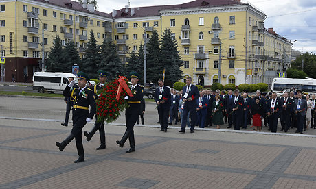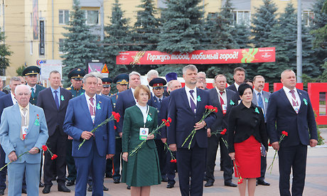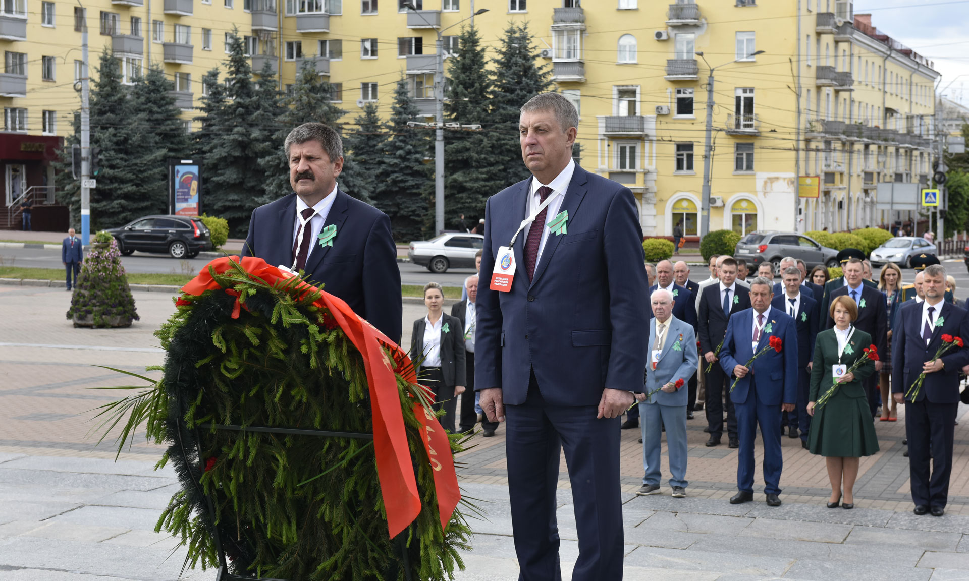 В ритуале возложения цветов и венков к Вечному огню приняли участие Губернатор Брянской области Александр Богомаз, председатель Брянской областной Думы Владимир Попков, главный федеральный инспектор по Брянской области Андрей Дьячук, Герой Советского Союза Иван Кашин, депутаты Государственной Думы Федерального Собрания Российской Федерации Валентина Миронова и Валентин Суббот, председатель Брянского областного суда Евгений Быков, председатель Арбитражного суда Брянской области Евгений Егоров, начальник управления ФСБ России по Брянской области Николай Рудь, начальник управления МВД России по Брянской области Владислав Толкунов, начальник главного управления МЧС России по Брянской области Вадим Уваркин, заместитель начальника правления Федеральной службы войск национальной гвардии Российской Федерации по Брянской области Сергей Сердюк, первый заместитель руководителя следственного управления Следственного комитета Российской Федерации по Брянской области Дмитрий Буравцов, начальник пограничного управления ФСБ России по Брянской области Сергей Митюшин, руководитель управления Федеральной службы судебных приставов по Брянской области — главный судебный пристав Брянской области Елена Бывшева, начальник управления ФСИН России по Брянской области Леонид Сагалаков, заместитель начальника Брянской таможни Мирослав Мильченко, руководитель управления ФНС России по Брянской области Андрей Маркелов, заместители Губернатора Брянской области, руководители города Брянска, депутаты Брянской областной Думы, руководитель Брянского регионального отделения ООО «Ветераны боевых действий России» Вячеслав Губанов, председатель Брянской областной общественной организации Российского союза ветеранов Виктор Андреев, председатель Брянского регионального общественного движения военно-патриотических и поисковых организаций «Отечество», организатор шествия Общероссийского общественного гражданско-патриотического движения «Бессмертный полк» Александр Соболев, командир в/ч 55443-БМ Игорь Дубинкин, руководитель исполнительного комитета регионального отделения Общероссийского общественного движения «Народный фронт «За Россию» в Брянской области Лариса Третьякова, сопредседатель регионального штаба регионального отделения Общероссийского общественного движения «Народный фронт «За Россию» в Брянской области Валерий Родоманов, член правления РОО «Брянское землячество» Александр Борода, член РОО «Брянское землячество в г. Москва» Игорь Демиденко, секретарь Брянской Епархии о. Павел (Чикалин).