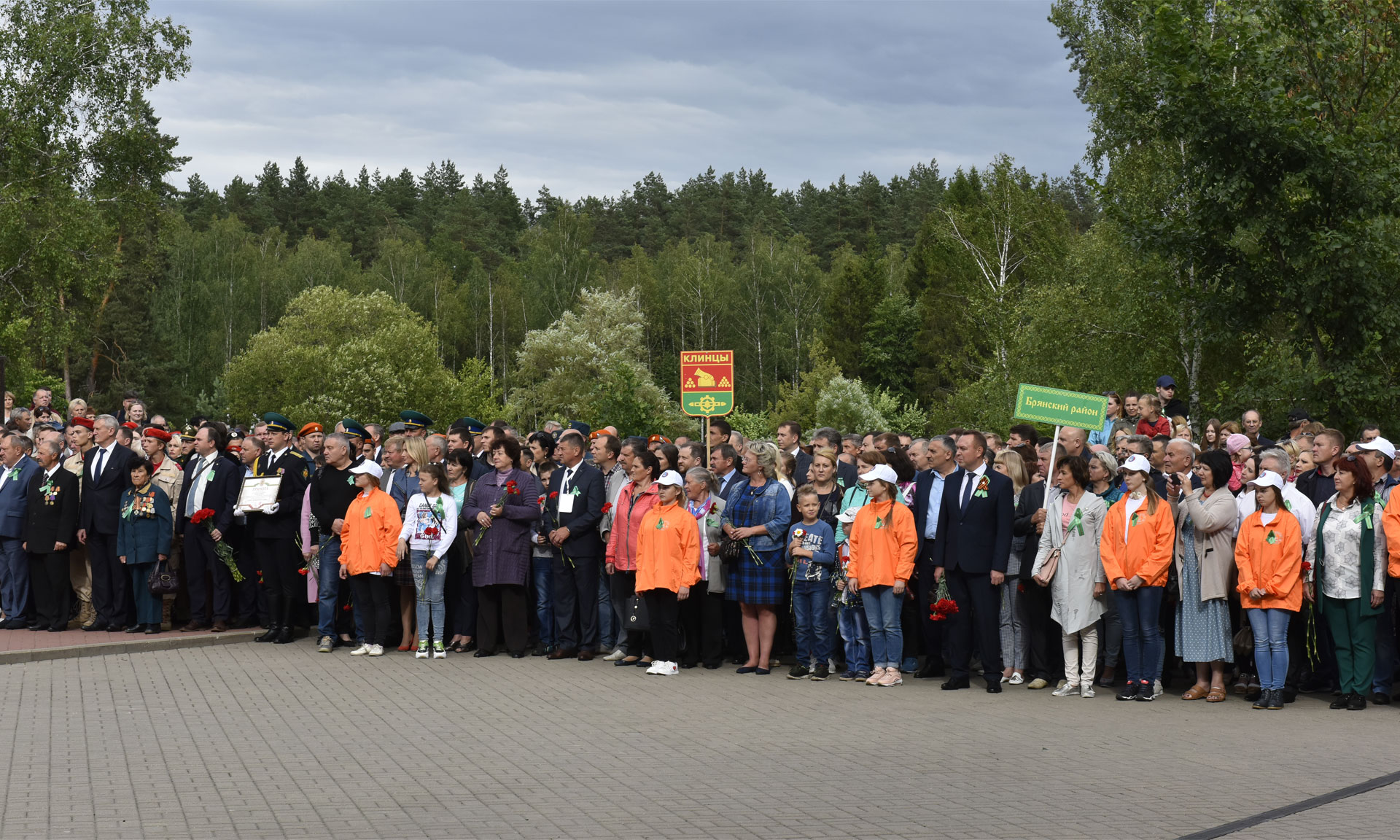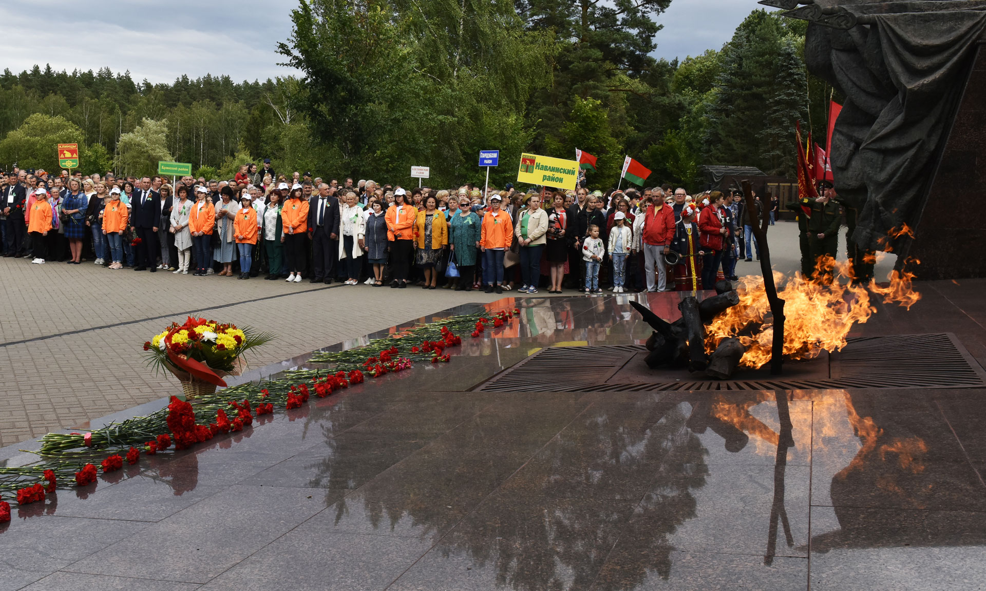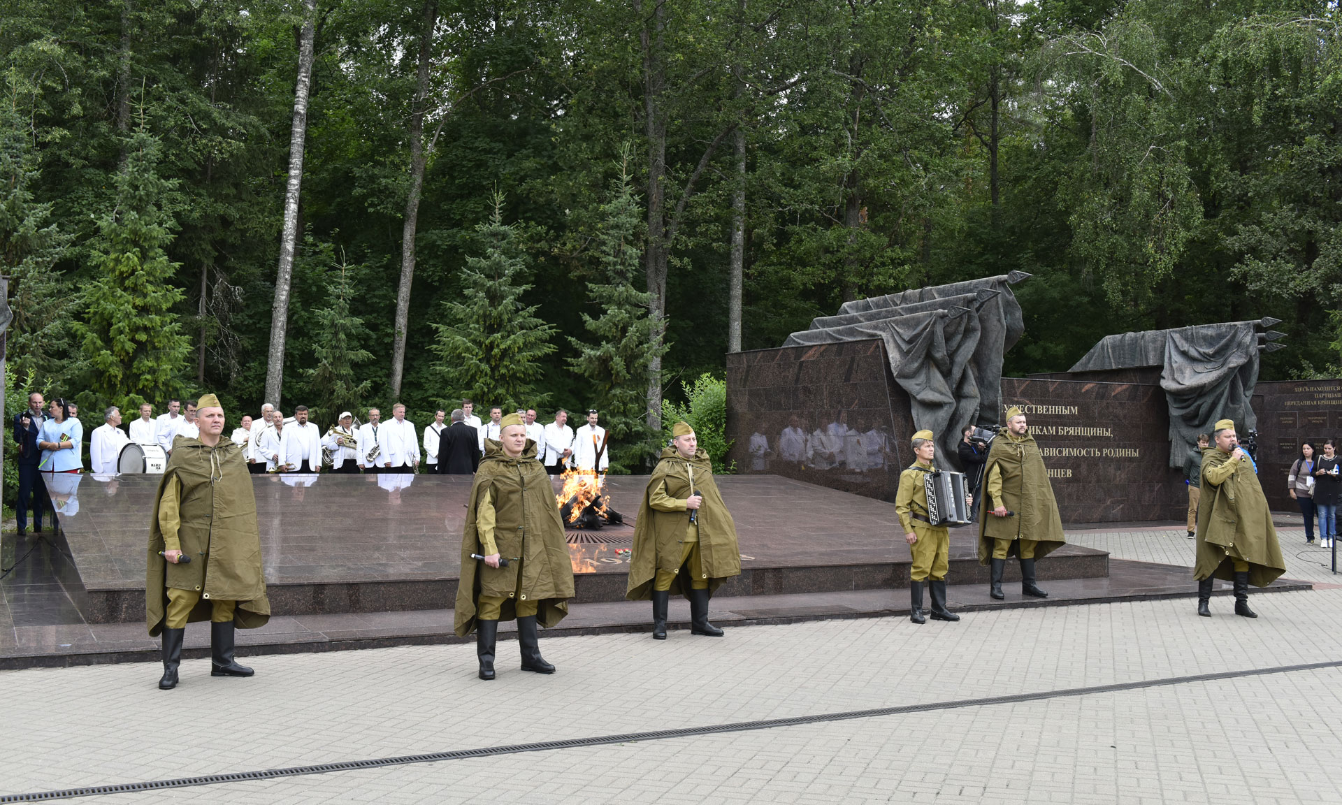 В знак памяти и благодарности подвигу партизан и подпольщиков, отдавших жизни в борьбе за свободу и независимость Родины, руководители Брянской области и почетные гости возложили цветы к вечному огню. В торжественной церемонии приняли участие Губернатор Брянской области Александр Богомаз, народный артист СССР, Герой Труда Российской Федерации, сопредседатель движения «Бессмертный полк» Василий Семенович Лановой, Герой Советского Союза Иван Андреевич Кашин, исполняющий обязанности председателя Гомельского областного исполнительного комитета Республики Беларусь Геннадий Соловей, председатель Брянской областной Думы Владимир Попков, председатель Гомельского областного Совета депутатов Екатерина Зенкевич, главный федеральный инспектор по Брянской области Андрей Дьячук, руководители делегаций Гомельской области и города Минска Республики Беларусь, Украины, Литвы, Латвии, Эстонии, депутаты Государственной Думы Федерального Собрания Российской Федерации Валентина Миронова и Валентин Суббот, руководители силовых структур Брянской области, заместители Губернатора Брянской области и заместители председателя Брянской областной Думы, руководители Брянска, представители Брянской Епархии, руководители федеральных территориальных органов исполнительных органов государственной власти в Брянской области.