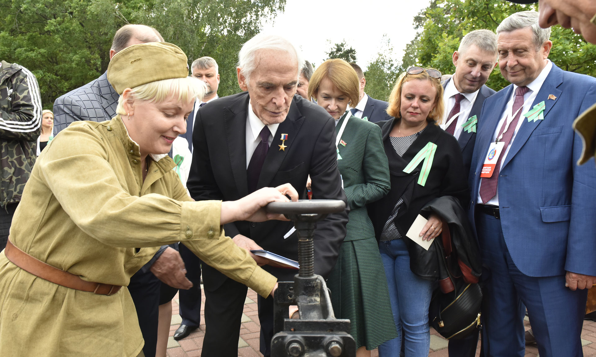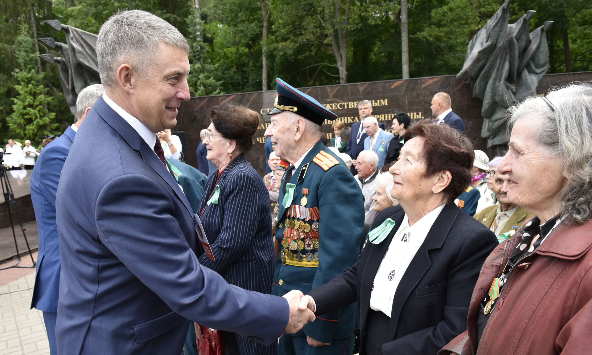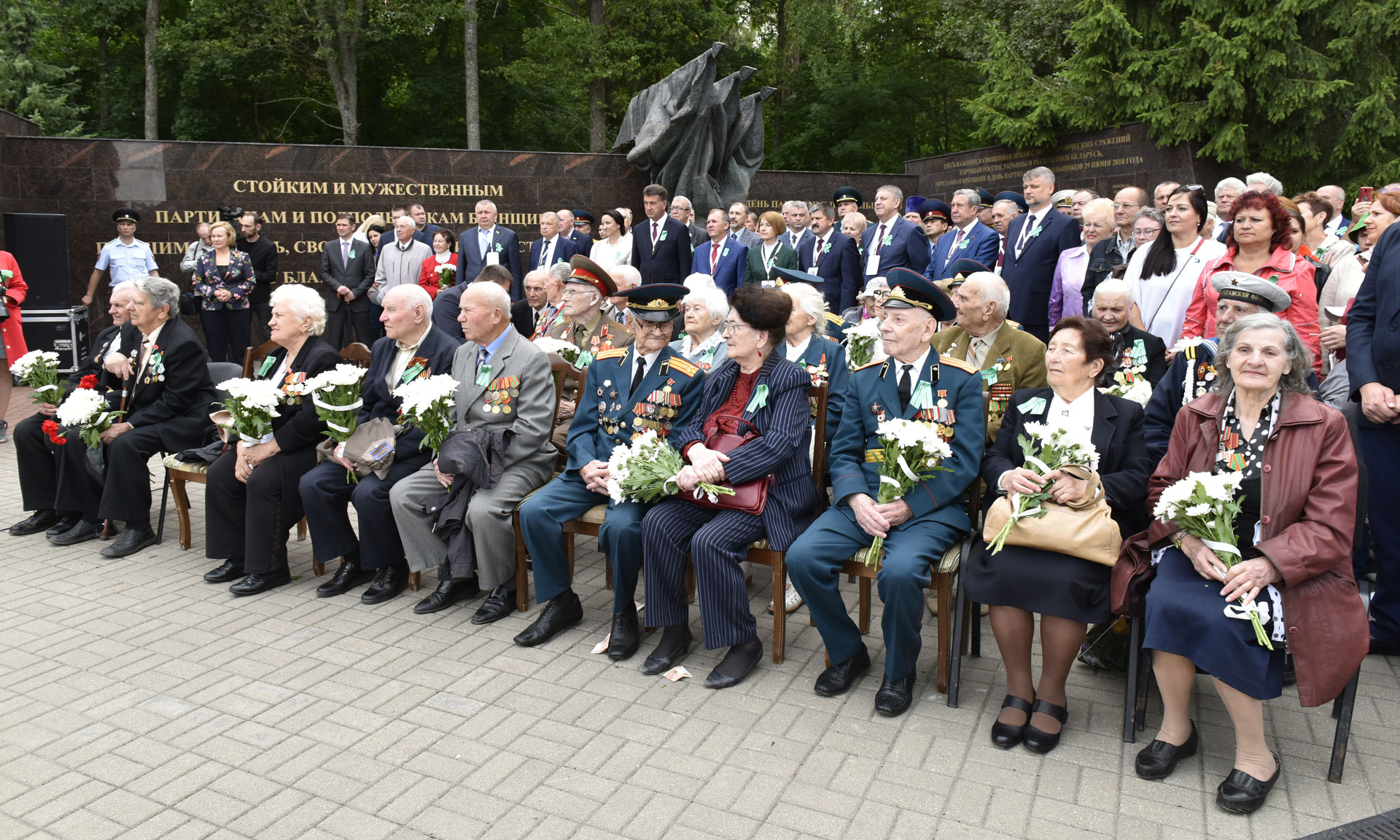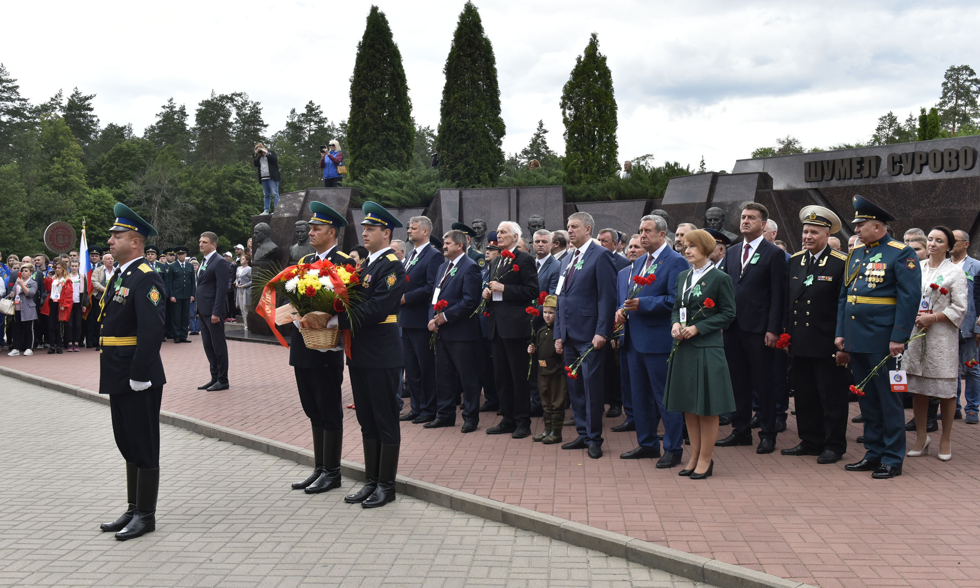 В знак памяти и благодарности подвигу партизан и подпольщиков, отдавших жизни в борьбе за свободу и независимость Родины, руководители Брянской области и почетные гости возложили цветы к вечному огню. В торжественной церемонии приняли участие Губернатор Брянской области Александр Богомаз, народный артист СССР, Герой Труда Российской Федерации, сопредседатель движения «Бессмертный полк» Василий Семенович Лановой, Герой Советского Союза Иван Андреевич Кашин, исполняющий обязанности председателя Гомельского областного исполнительного комитета Республики Беларусь Геннадий Соловей, председатель Брянской областной Думы Владимир Попков, председатель Гомельского областного Совета депутатов Екатерина Зенкевич, главный федеральный инспектор по Брянской области Андрей Дьячук, руководители делегаций Гомельской области и города Минска Республики Беларусь, Украины, Литвы, Латвии, Эстонии, депутаты Государственной Думы Федерального Собрания Российской Федерации Валентина Миронова и Валентин Суббот, руководители силовых структур Брянской области, заместители Губернатора Брянской области и заместители председателя Брянской областной Думы, руководители Брянска, представители Брянской Епархии, руководители федеральных территориальных органов исполнительных органов государственной власти в Брянской области.