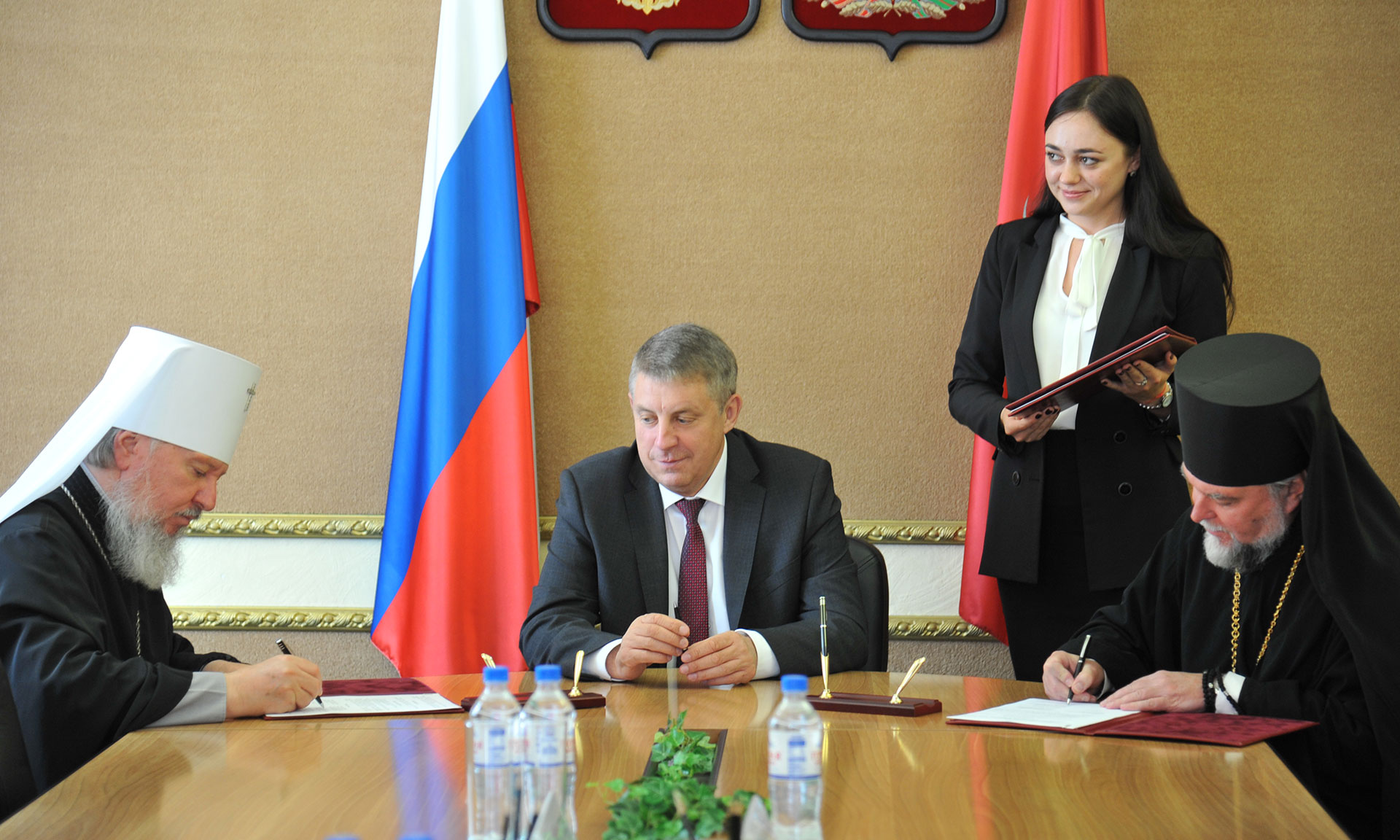 — Подписанное сегодня соглашение — это продолжение нашего сотрудничества. Напомню, что в 2013 году была образована Брянская митрополия, в которую входят две Епархии: Брянская и Клинцовская. И вот подписанное сегодня соглашение позволит нам обоюдно решать все возникающие вопросы. Это и такие проекты, как празднование Дня семьи, любви и верности, День славянской письменности — это церковно-светские праздники и многие другие. Чтобы вместе нам идти по жизни, решать совместно вопросы для того, чтобы Брянщина наша жила, процветала, ведь, все что делается, делается для людей. Хочется отдельно поблагодарить Александра Васильевича и Владимира Ивановича за то внимание, которое уделяется всему духовенству. Спасибо за то, что нам удается решать многие вопросы. И я благодарен Богу за то, что у нас такие руководители, которые многое сделали за эти 4 года, и все это видно: детские сады, школы, пристройки, мосты, дороги, будет построен дворец единоборств — все это делается для людей.