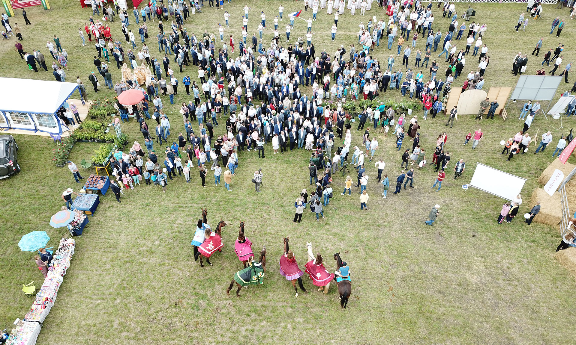 У главных ворот выставки почетных гостей встретил показательным выступлением конный театр БГАУ.