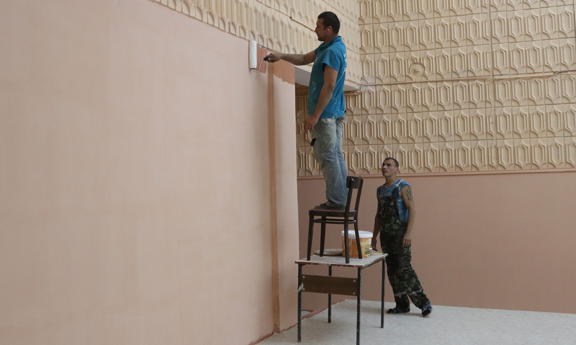 В поселке Первое мая по федеральной программе «Культура малой Родины» ведется ремонт Первомайского Дома культуры. Заместитель губернатора Владимир Оборотов в сопровождении главы Клинцовского района Владимира Холуева, заместителя главы районной администрации Людмилы Максименко, начальника отдела культуры района Аллы Гончаровой оценил выполненные работы.