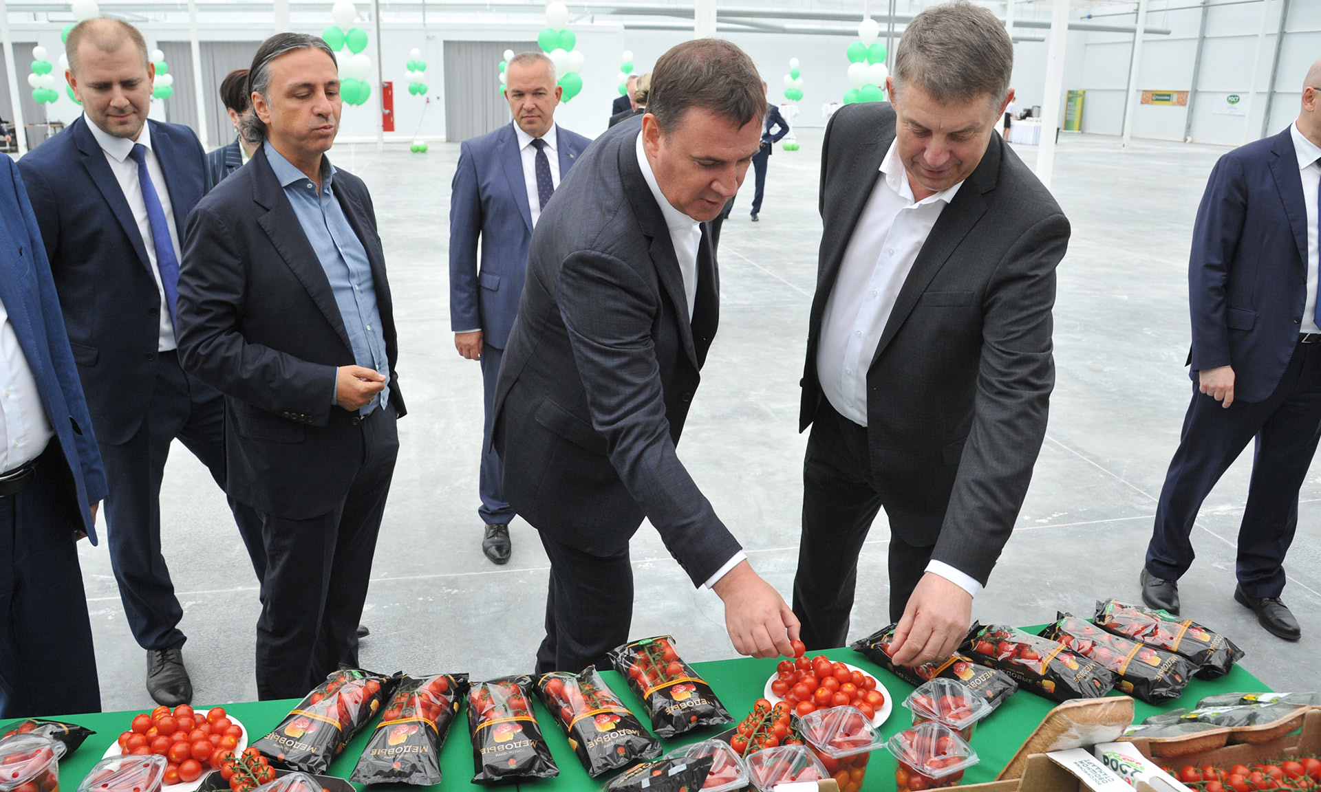 Он провел для почетных гостей экскурсию по предприятию. Министр сельского хозяйства РФ Дмитрий Патрушев и Губернатор Брянской области Александр Богомаз ознакомились с технологией процесса производства овощей и внесли свой вклад в будущий урожай — посадили семена помидоров черри.