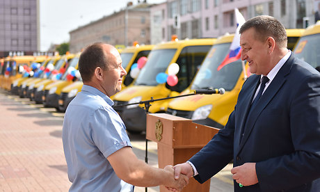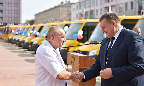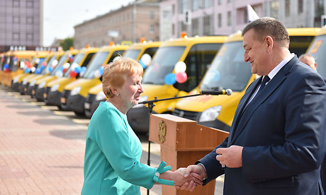 — Добрый день, уважаемые участники мероприятия. Такие события стали традиционными, уже на протяжении трех лет мы вручаем ту или иную технику для различных наших муниципальных предприятий, транспортных предприятий, системы здравоохранения, образования. Это и автобусы для наших жителей и области, и города, и машины скорых помощей, и сегодня мы проводим еще одно мероприятие по вручению школьных автобусов для наших муниципальных образовательных учреждений Брянской области. Очень правильно и важно, что за эти три года мы с этими сегодняшними 24 автобусов поставили в наши школьные учреждения 145 автобусов. И конечно же, радует, что из 145 автобусов только 43 приобретены за федеральные средства, а все остальные — за областные деньги. Во время встречи с премьер-министром России Дмитрием Анатольевичем Медведевым, когда я рассказывал о том, что делается в Брянской области, как растет промышленность, сельское хозяйство, то было отмечено, что сегодня даже на фоне России — это впечатляющие цифры. Все, что мы сегодня делаем, мы можем делать, потому что растет экономика, растет промышленное производство, растет сельскохозяйственное производство, растет малый бизнес. Оборот малого бизнеса вырос за эти 4 года на 44 процента. Растут доходы, которые позволяют областной власти выполнять социальные обязательства перед нашим населением, хотя я прекрасно понимаю, что мы должны сделать еще больше. Но больше невозможно сделать за один год, для этого нужно время. До 2017 годы мы решили многие проблемы, которые копились до нас. Сегодня мы ставим перед собой далеко идущие цели и задачи. Для того, чтобы наши школьники имели хорошие условия, мы строим новые школы, в этом году мы направили более 350 миллионов рублей на капремонт школ, и мы будем это продолжать. Для этого мы строим и ремонтируем больницы. Мы ставим задачу, чтобы минимум пять районных больниц капитально ремонтировать, чтобы приводить их в соответствие с 21 веком. И мы эту работу сделаем.