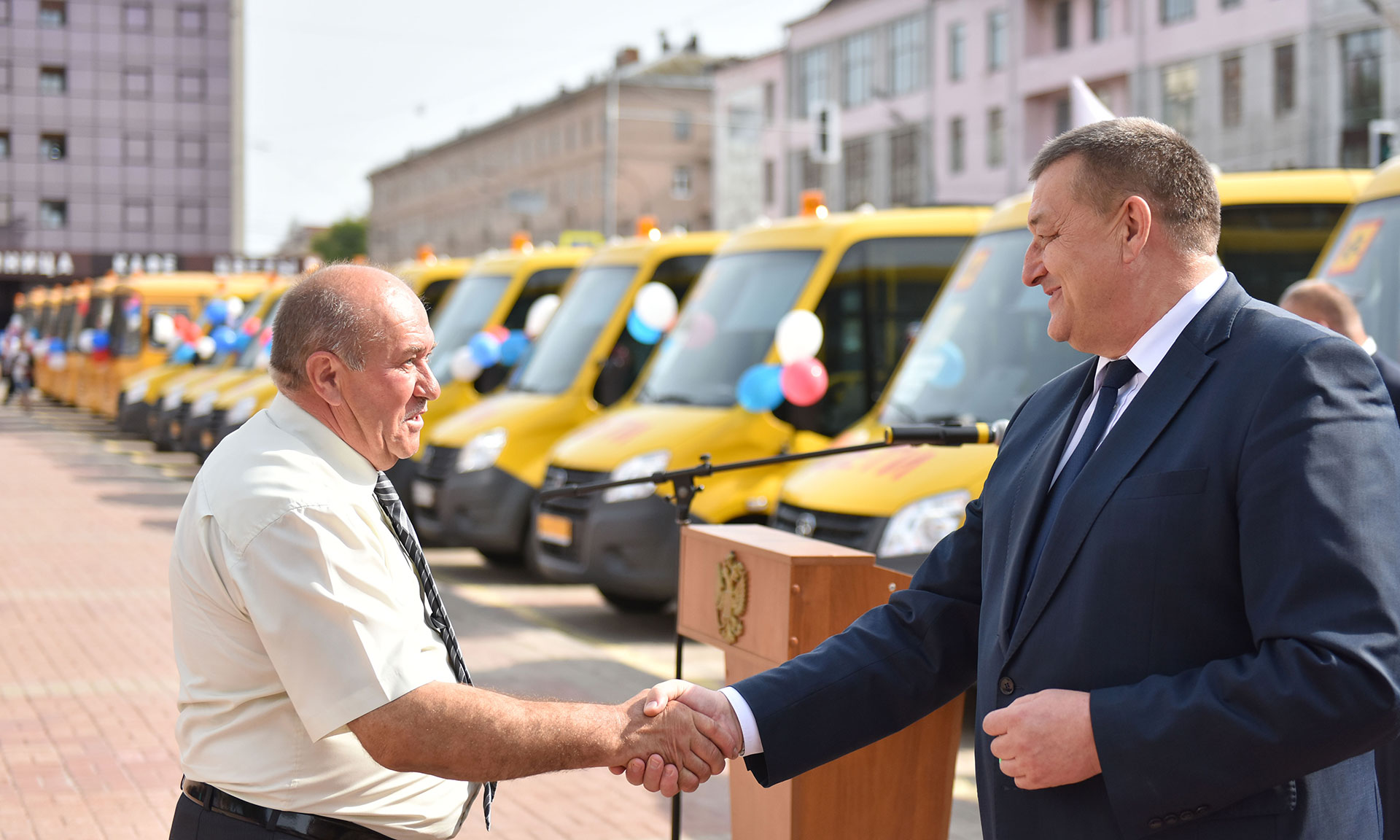 На торжественной церемонии вручения школьных автобусов присутствовали Губернатор Брянской области Александр Богомаз; председатель Брянской областной Думы Владимир Попков; главный федеральный инспектор по Брянской области Андрей Дьячук; депутаты Государственной Думы Федерального Собрания Российской Федерации Валентина Миронова и Валентин Суббот, вице-губернатор Брянской области Александр Резунов, заместитель Губернатора Брянской области Владимир Оборотов, директор департамента образования и науки Татьяна Кулешова, руководители города Брянска, председатели комитетов и депутаты Брянской областной Думы, руководители исполнительных органов государственной власти, руководители муниципальных образований Брянской области, руководители образовательных организаций.