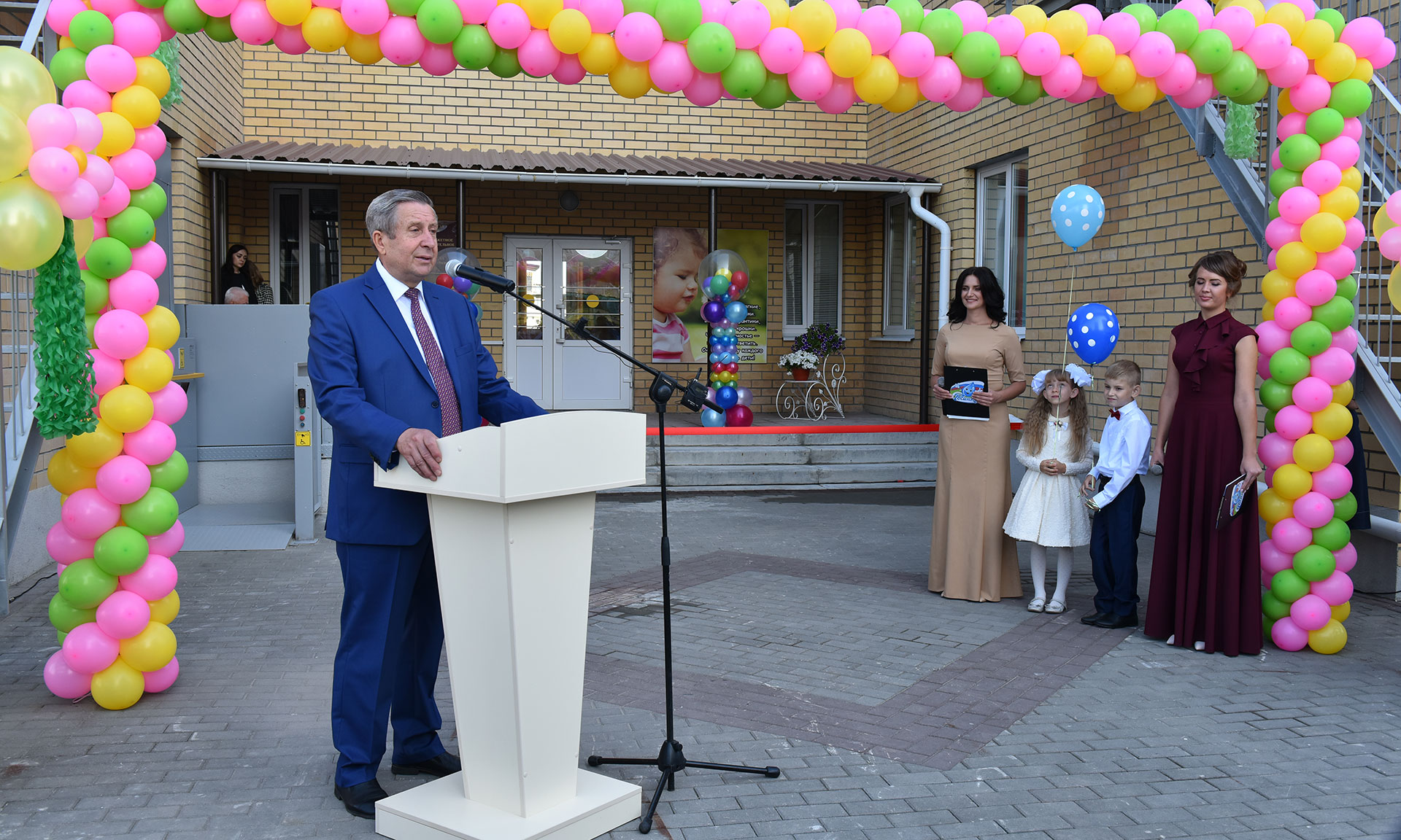 — Дорогие ребята, уважаемые родители и педагоги! В этот радостный день, которому сопутствует хорошая погода, открывается новый детский сад. Самое важное для нас — это счастье и здоровье наших детей. Сегодня в регионе делается все возможное для всестороннего развития подрастающего поколения: строятся новые школы, детские сады, спортивные сооружения.