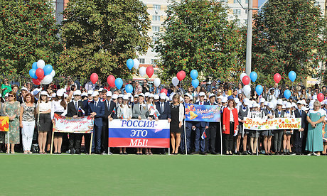 От имени полномочного представителя президента России в ЦФО Игоря Щёголева с Днем знаний поздравил собравшихся главный федеральный инспектор Андрей Дьячук: