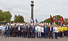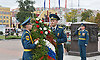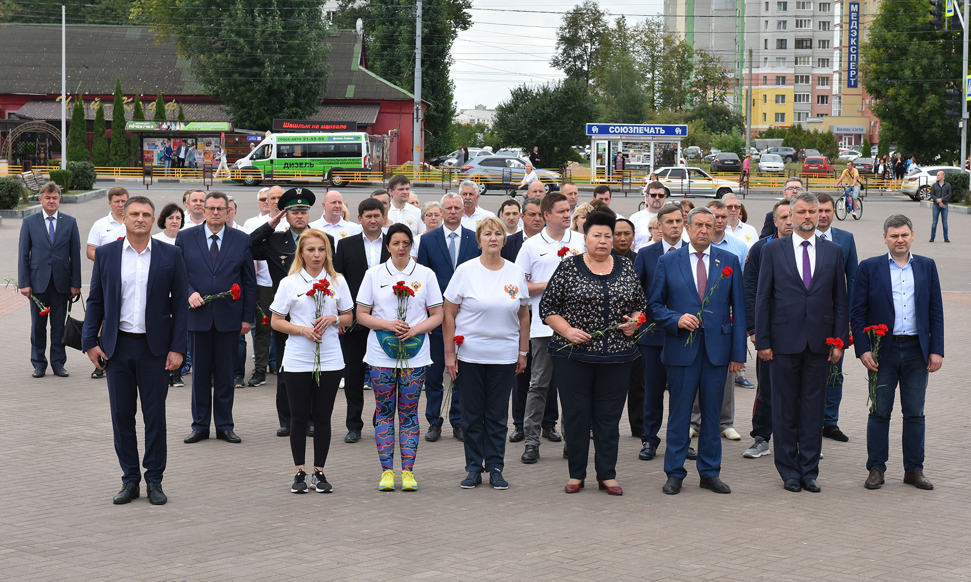 Участники марафона и официальные лица почтили минутой молчания память воинов, павших на фронтах Великой Отечественной войны 1941–1945 годов, возложили цветы и венки и к стеле «Брянск — город воинской славы».