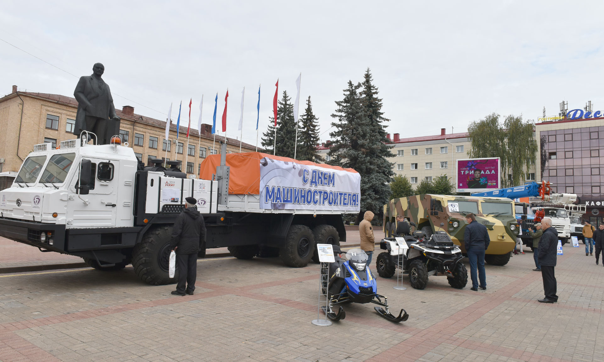 На площади Ленина были представлены образцы техники: автогрейдер ЗАО «Брянский арсенал», трактор ООО «Брянский тракторный завод», колесный тягач арктического варианта и специальная машина под установку ПВО АО «Брянский автомобильный завод», погрузчик ООО «Амкодор-Брянск», автомобильный кран и автовышки АО «Клинцовский автокрановый завод».