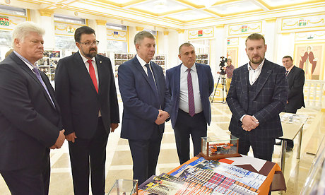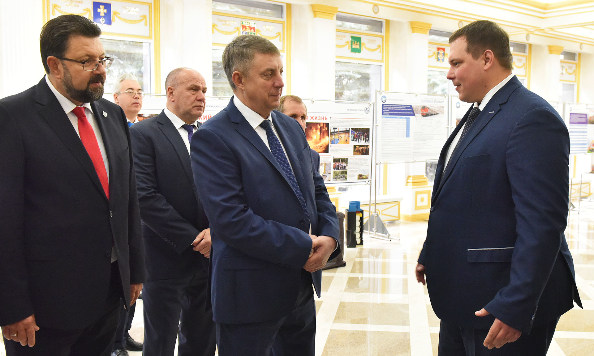Непосредственно перед началом мероприятия его участники осмотрели выставку, организованную в холле Хрустального зала. Свои стенды представили ведущие предприятия промышленности региона: АО «УК «Брянский машиностроительный завод», АО «ПО «Бежицкая сталь», АО «Брянский автомобильный завод», ООО «Жуковский веломотозавод», ООО «Унечский завод тугоплавких металлов», ООО «Амкодор-Брянск», АО «Клинцовский автокрановый завод», ЗАО СП «Брянсксельмаш», ООО Торговый дом «Русская Броня», а также департамент промышленности, транспорта и связи Брянской области.