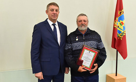 Благодарственным письмом главного федерального инспектора по Брянской области награждены: Александр Левкин — заместитель начальника департамента по производству ОКР и гражданской продукции АО «Брянский машиностроительный завод», Юрий Шпак — помощник главного конструктора специального конструкторского бюро АО «Брянский машиностроительный завод», Людмила Мишина — начальник бюро технического контроля механосборочного цеха отдела технического контроля АО «Брянский машиностроительный завод», Елена Тетёра — начальник лаборатории неразрущающих методов контроля центральной заводской лаборатории АО «ПО «Бежицкая сталь», Игорь Селиханов — электрогазосварщик, занятый на резке и ручной сварке термообрубного цеха АО «ПО «Бежицкая сталь».