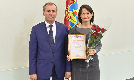 Почетной грамотой Губернатора Брянской области были награждены: Владимир Черенков — директор по безопасности и режиму АО «Управляющая компания «Брянский машиностроительный завод», Татьяна Якунина — машинист крана цеха № 4 ЗАО «Брянский арсенал», Владимир Джура — шлифовщик металлических изделий инструментального участка ОАО «Клинцовский завод поршневых колец», Николай Ляпичев — электроэрозионист ООО «Термотрон-завод», Галина Волик — стерженщик ручной формовки литейного участка № 2 АО «Клинцовский автокрановый завод», Анатолий Чернобай — инженер-конструктор по силовым конструкциям бюро разработки кранов автомобильных АО «Клинцовский автокрановый завод», Галина Новикова — заместитель начальника отдела кадров АО «Клинцовский автокрановый завод», Александр Щербаков — фрезеровщик отдела главного механика АО «Клинцовский автокрановый завод», Александр Клюев — сверловщик цеха № 13 ПАО «Брянский арсенал».