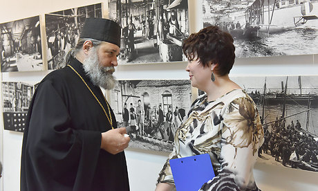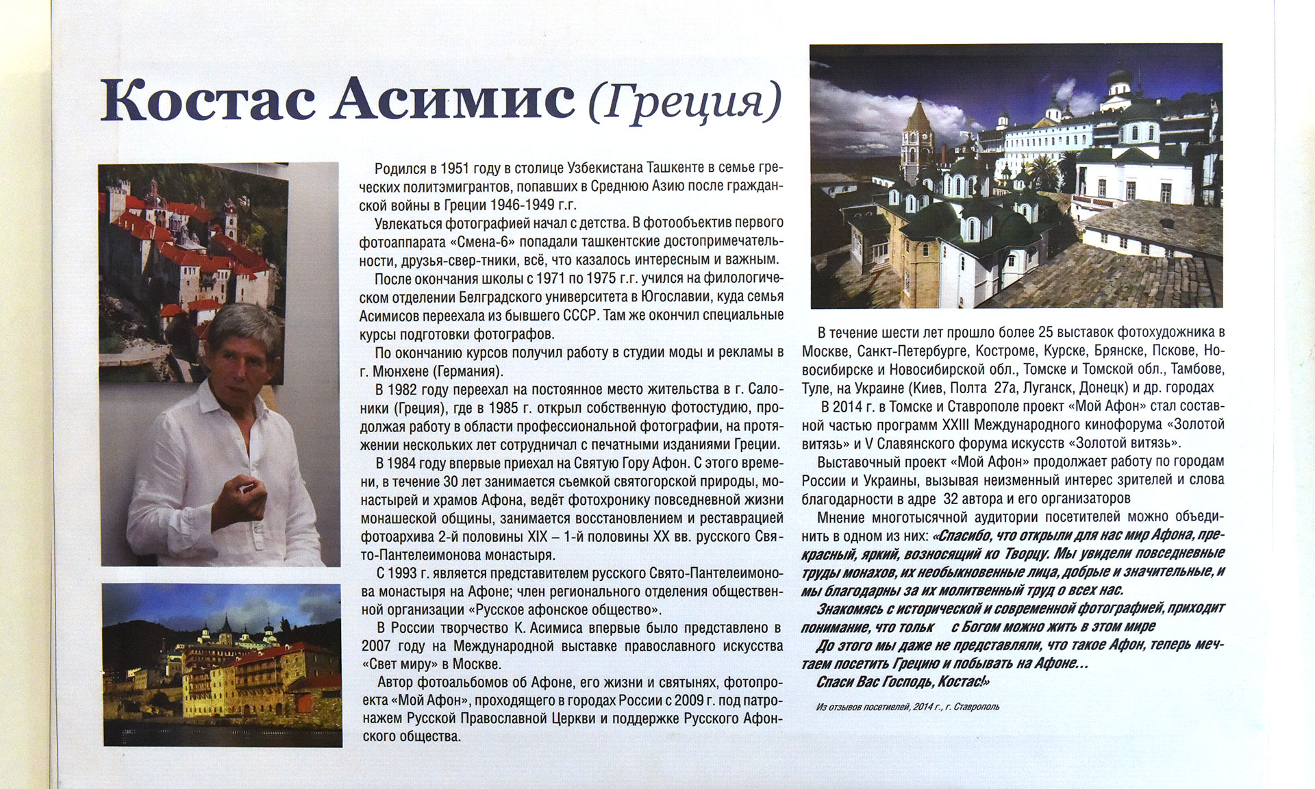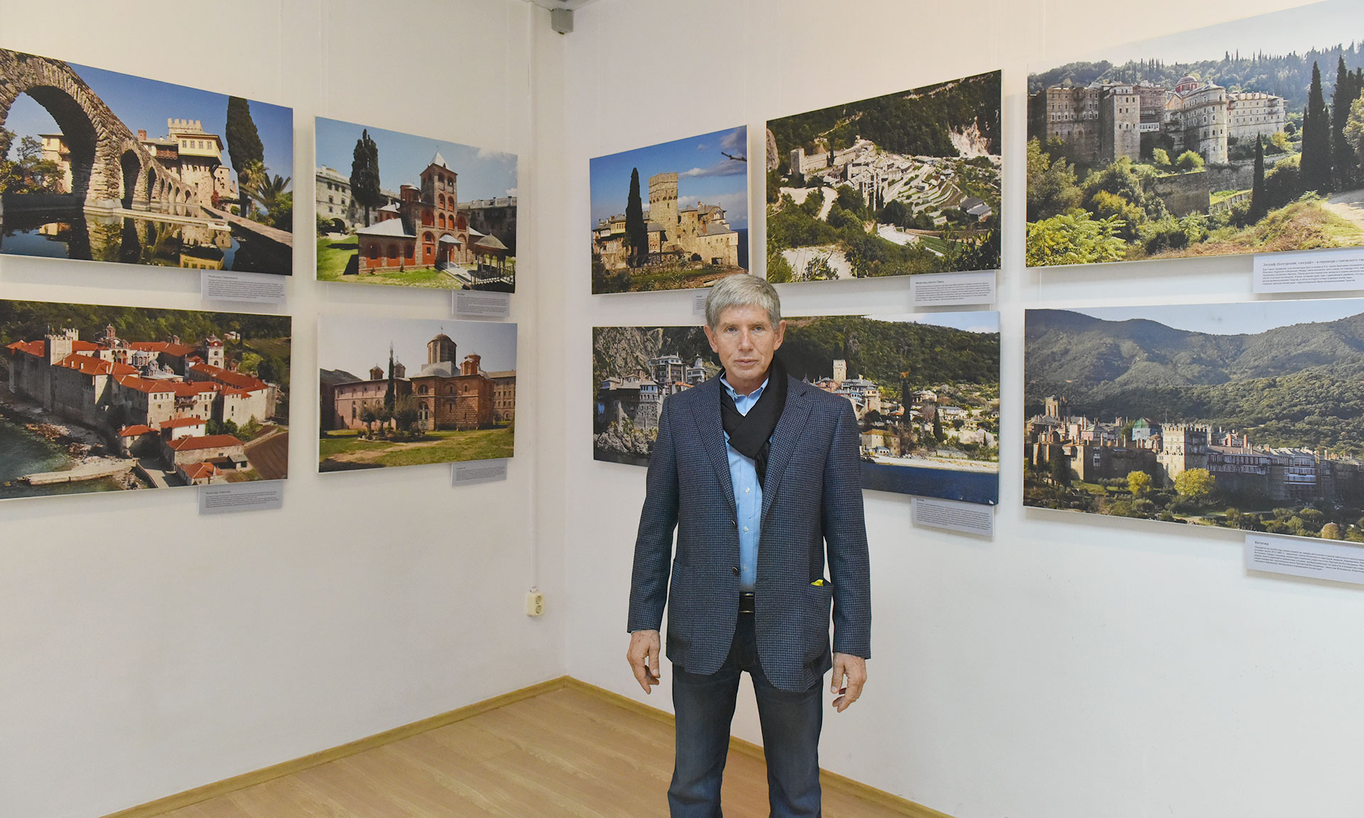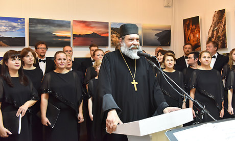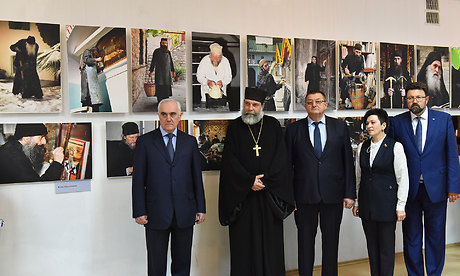 Автор выставки, греческий фотохудожник, представитель русского на Афоне Свято-Пантелеймонова монастыря Костас Асимис поблагодарил всех, кто пришел на выставку, и провел экскурсию по выставочному залу.