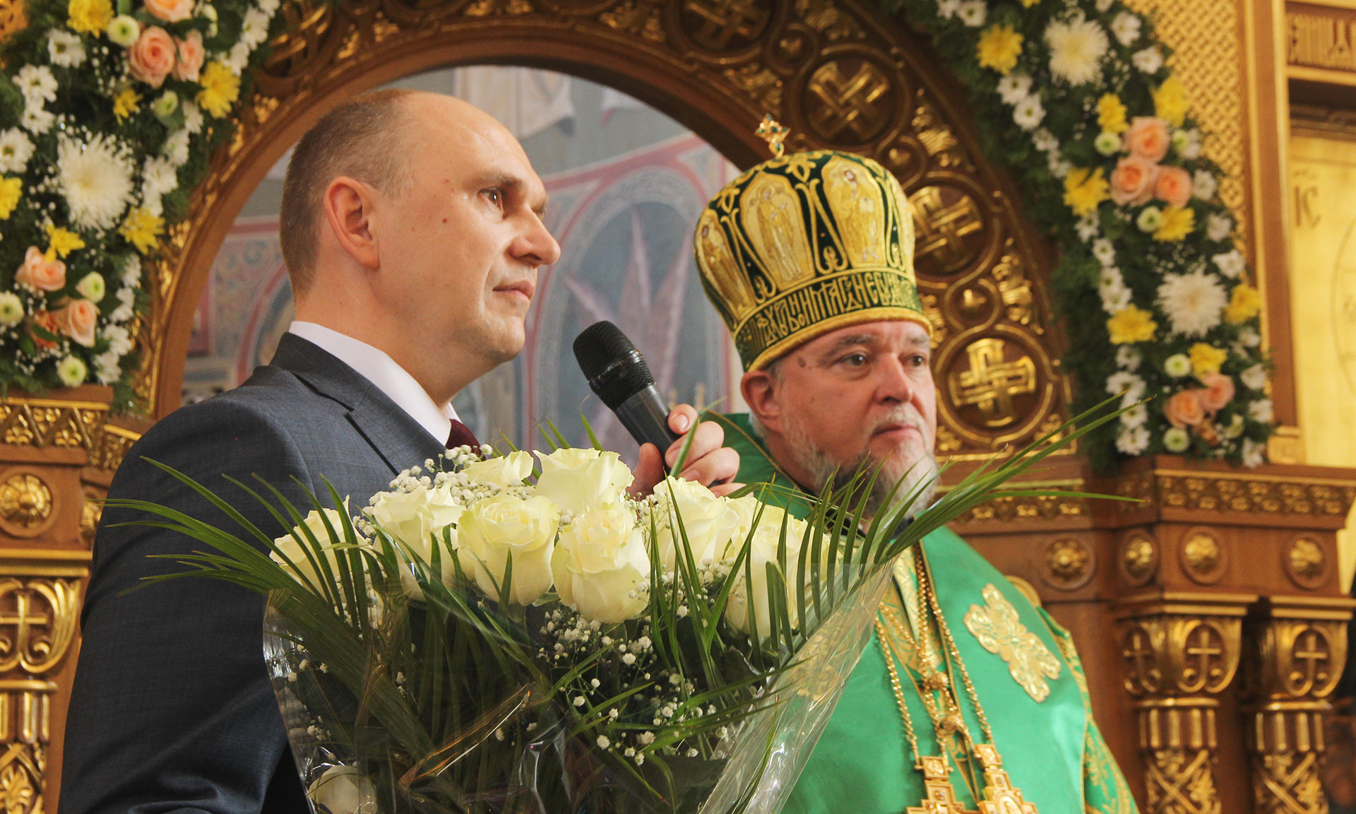 — Уважаемые Владыка Александр, Владыка Владимир, уважаемые священнослужители, братья и сестры, от имени депутатов Брянской областной Думы поздравляю вас с этим великим православным праздником. За последние пять лет Брянщина стала не только экономически и промышленно развитым регионом. На нашей земле строятся храмы, восстанавливаются церкви, в Клинцах возводится собор. Хочется сказать владыкам большое спасибо, всем здоровья, удачи и благополучия.