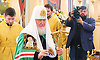 Каждому из верующих на память о богослужении Святейший Патриарх Московского и всея Руси Кирилл передал образа Свенской иконы Божией Матери с Патриаршим благословением.