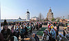 На телеканале «Союз» шла прямая трансляция Патриаршего богослужения. Часть верующих следила за трансляцией на больших экранах, установленных на территории храма.