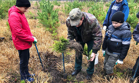 На участке было высажено около тысячи сеянцев ели. Участковый лесничий Андрей Нехаев рассказал ребятам, как ухаживать за деревцами.