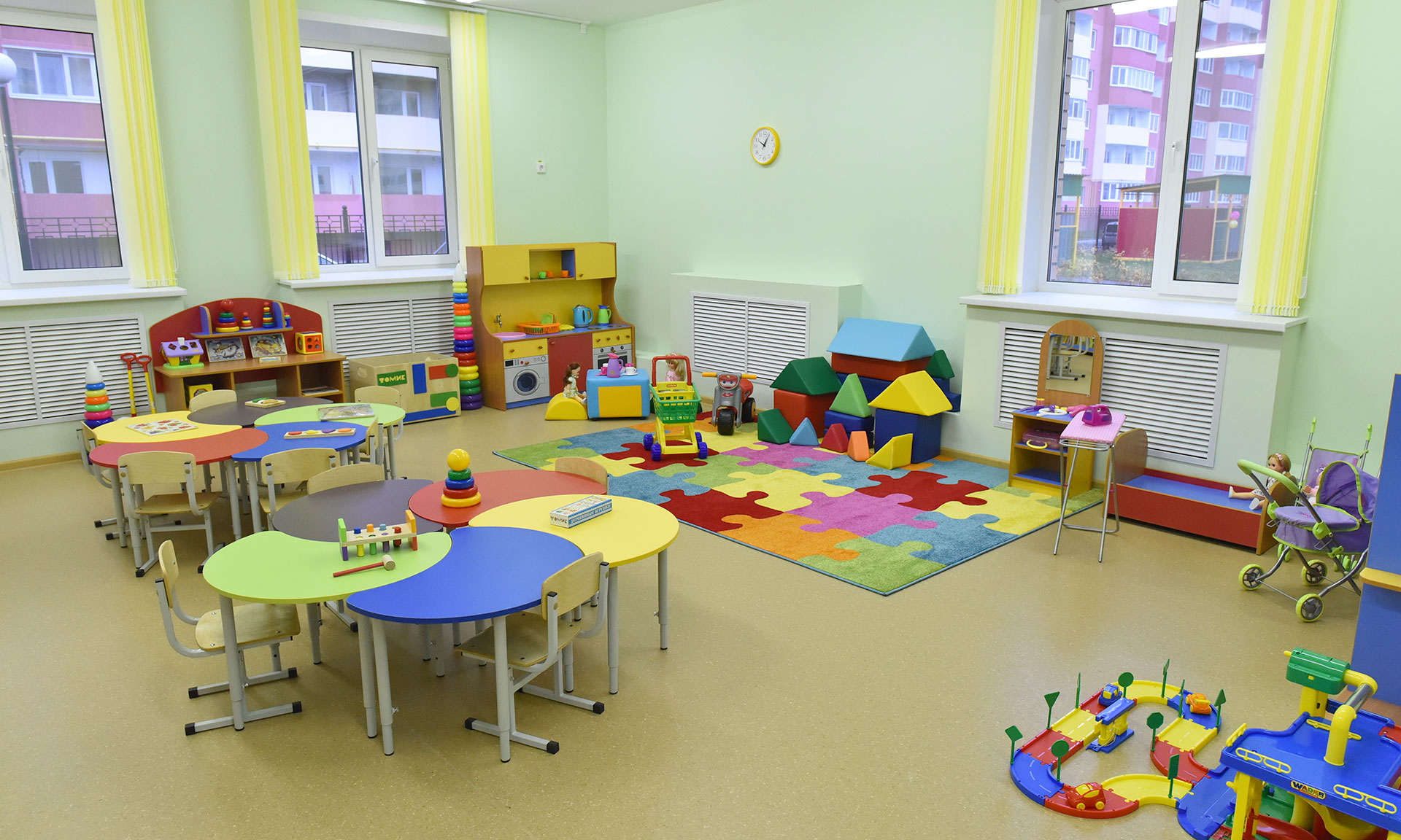 Детский сад соответствует всем требованиям, которые предъявляются и к развивающей среде, и к безопасности, и по дизайну, по эстетике.