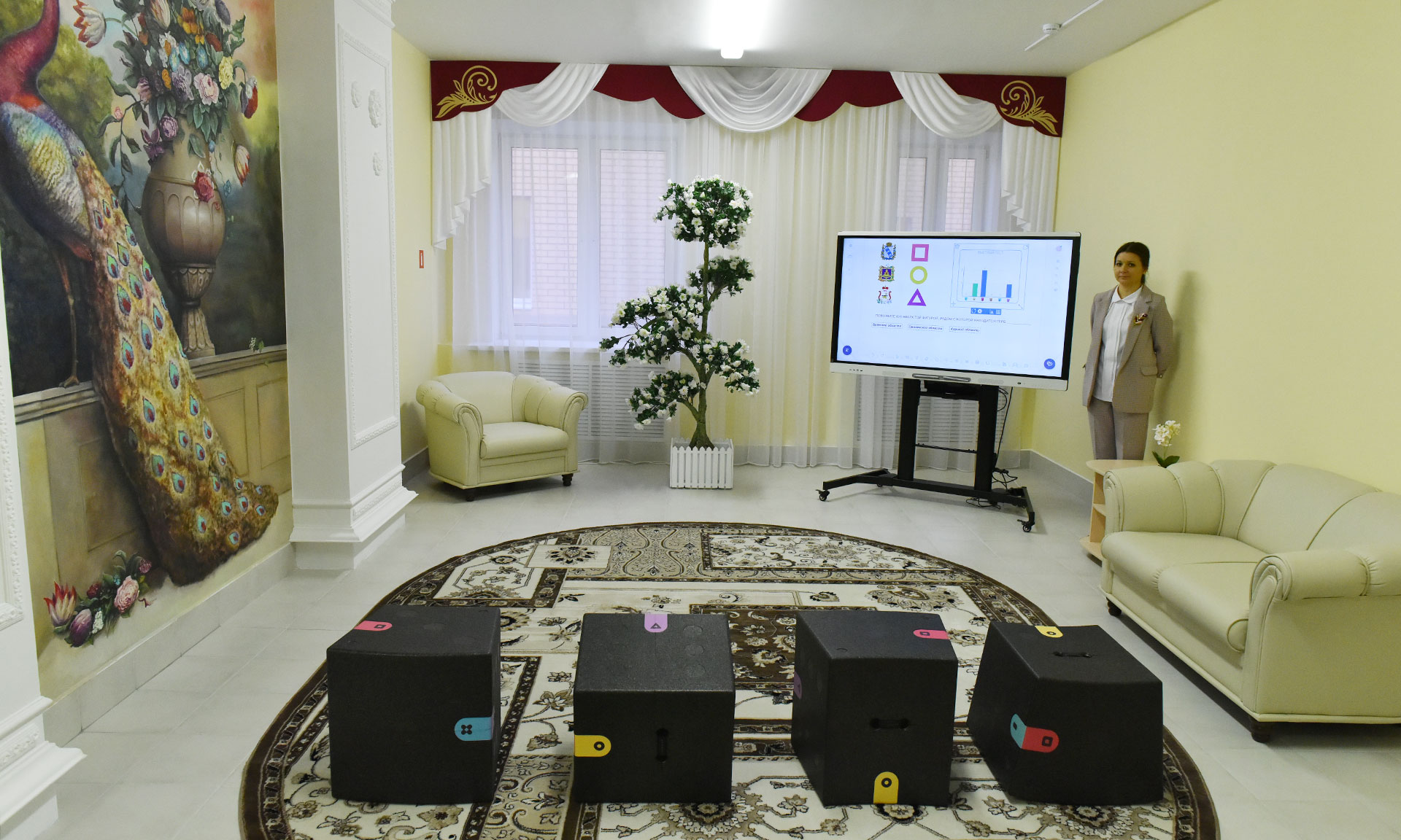 Мы проходили с экскурсией по детскому саду, и считаю, что здесь добрый, высокопрофессиональный коллектив. И детям и их родителям очень повезло. Главный принцип работы детского сада — разностороннее развитие ребёнка. Поэтому новое здание оснащено современным интерактивным, игровым, спортивным и дидактическим оборудованием. Кроме того, здесь будет работать бассейн.