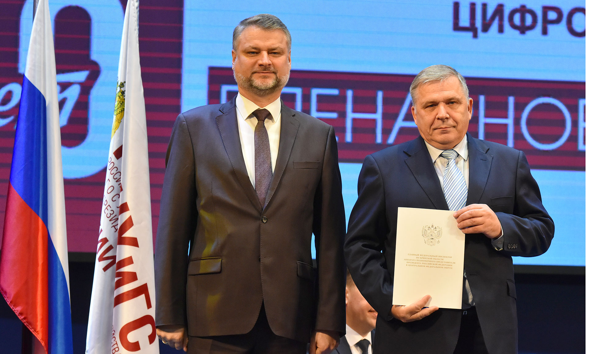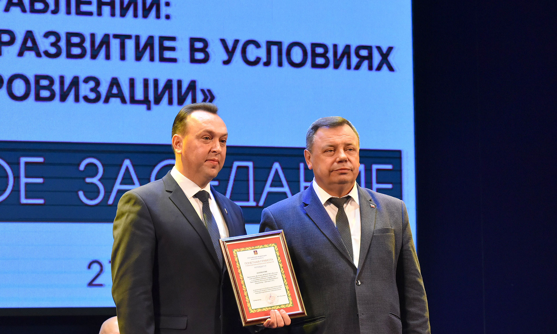Благодарственные письма главного федерального инспектора по Брянской области за многолетний добросовестный труд, достижение высоких результатов в решении возложенных задач и в связи с 20-летием образования Брянского филиала Российской академии народного хозяйства и государственной службы при Президенте Российской Федерации вручены: