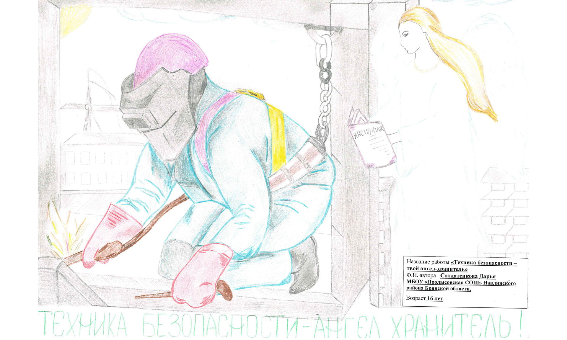 - конкурсная работа «Техника безопасности — твой ангел-хранитель» Солдатенковой Дарьи, 16 лет, МБОУ «Пролысовская средняя общеобразовательная школа», с. Пролысово Навлинского района Брянской области.