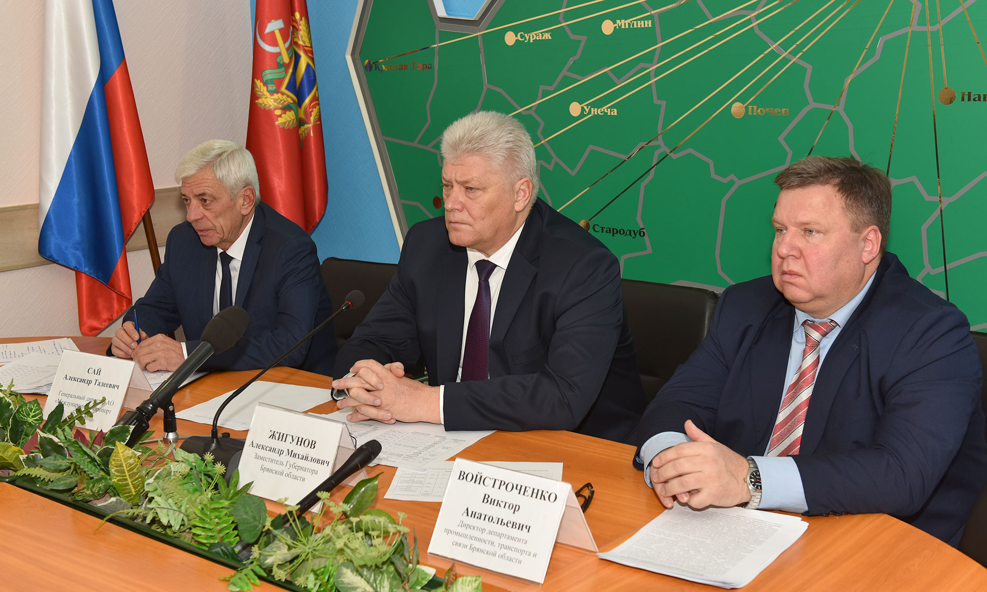В ней также приняли участие директор департамента промышленности, транспорта и связи Брянской области Виктор Войстроченко, генеральный директор АО «Международный аэропорт «Брянск» Александр Сай.