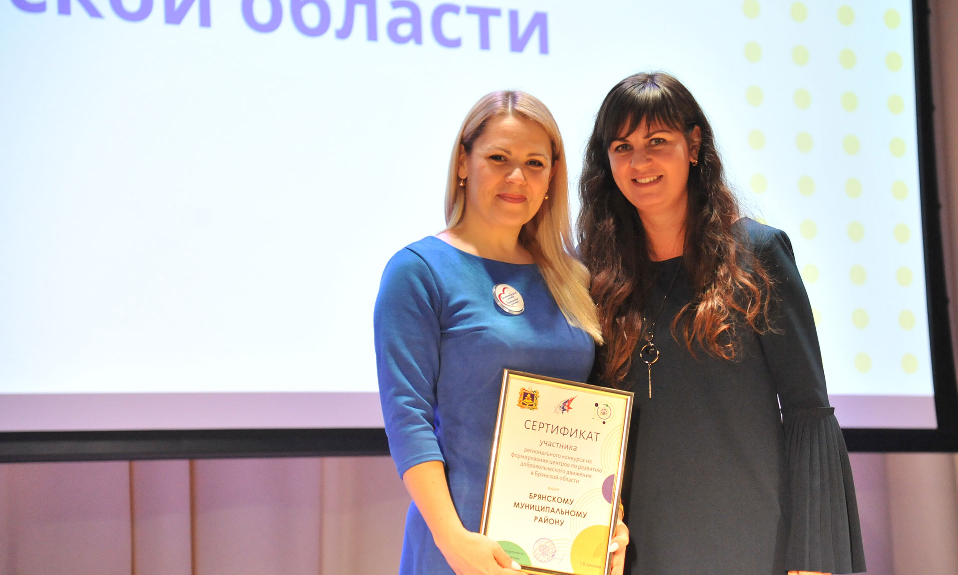 Начальник управления молодежной политики и общественных проектов департамента внутренней политики Брянской области Мария Раевская наградила победителей регионального конкурса на формирование центров по развитию добровольческого движения в Брянской области в рамках Региональной практики поддержки волонтерства «Регион добрых дел». Победителем регионального конкурса на формирование центров по развитию добровольческого движения в Брянской области стали Унечский, Трубчевский, Почепский, Дятьковский районы.