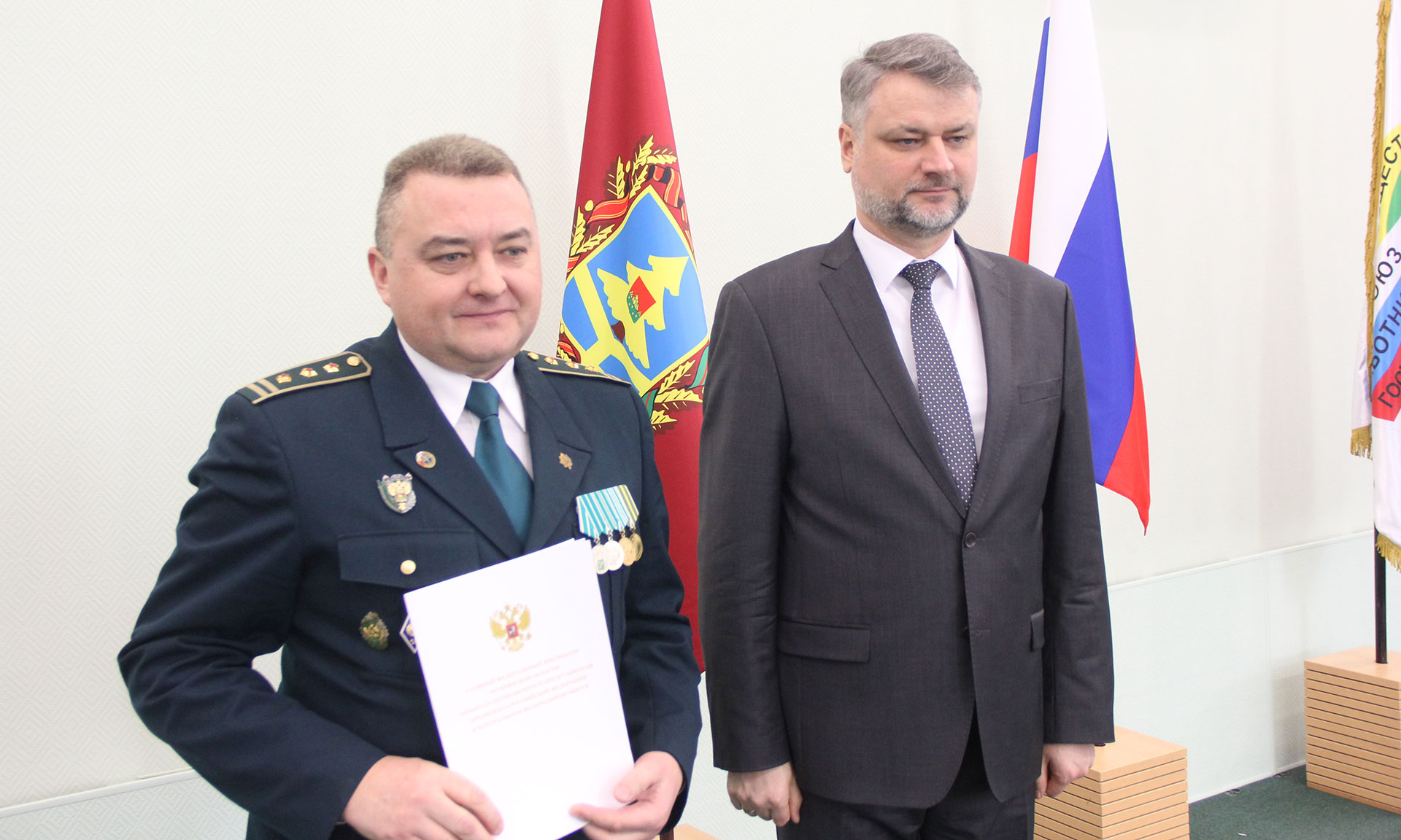 Почетной грамотой главного федерального инспектора по Брянской области за безупречный добросовестный труд и активную общественную деятельность награждены старший специалист 1 разряда отдела организационно-контрольной работы, информатизации и обеспечения информационной безопасности УФССП России по Брянской области Юлия Петрова, главный государственный таможенный инспектор отдела таможенного оформления и таможенного контроля Володарского таможенного поста Брянской таможни Дмитрий Прояненков, судебный пристав-исполнитель отдела судебных приставов по Брянскому, Жирятинскому районам и городу Сельцо УФССП России по Брянской области Екатерина Довыденко, главный государственный таможенный инспектор по информационно-технической работе Володарского таможенного поста Брянской таможни Дмитрий Демидов.