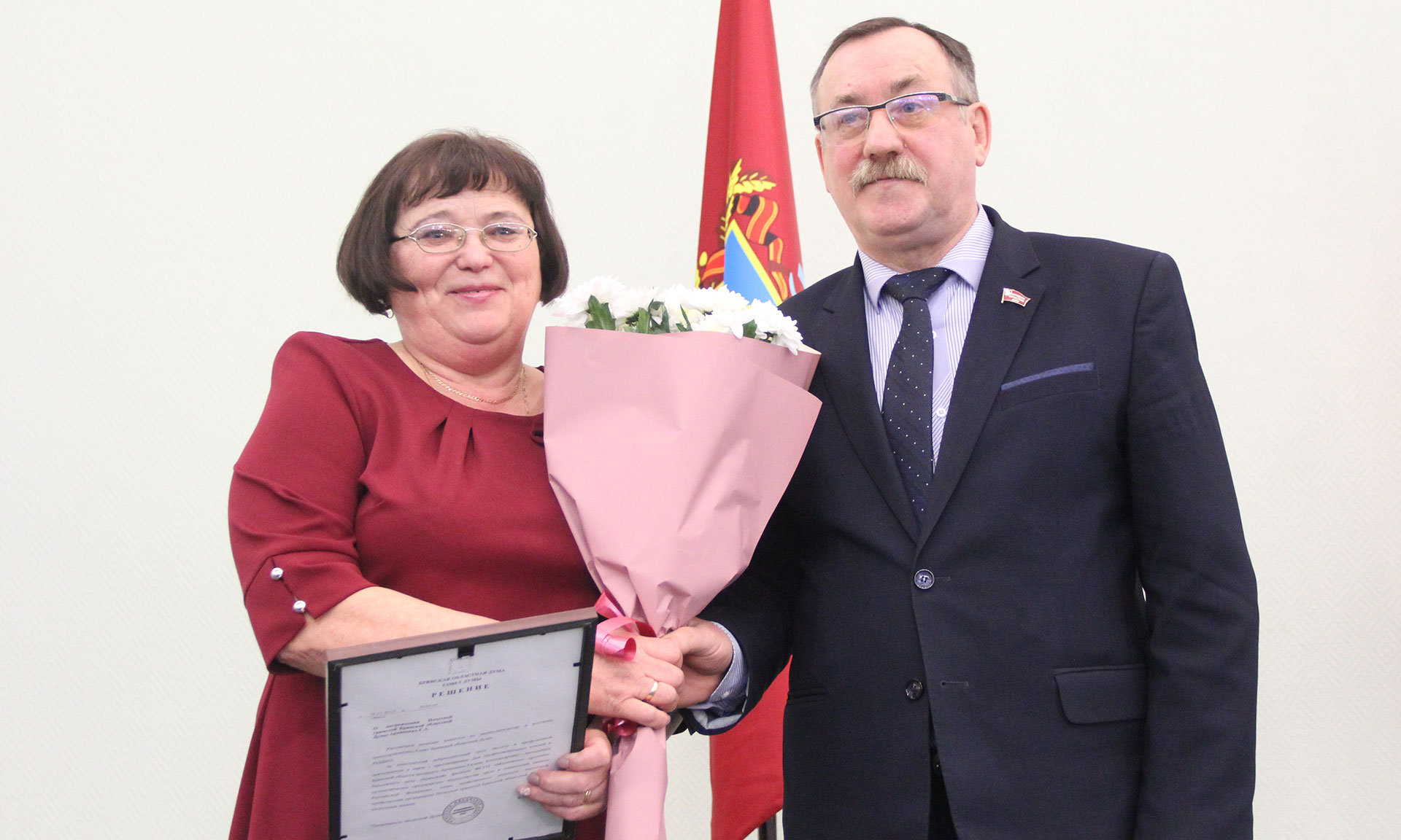 За многолетний добросовестный труд и личный вклад в укрепление Профсоюза Почетной грамотой Брянской областной Думы награждены старший специалист отделения договорно-правовой работы филиала ФГУП «Охрана» Росгвардии по Брянской области, член профсоюзного Комитета Любовь Максименко, член Общероссийского Профсоюза, начальник бандажного цеха «Брянского» филиала ФГУП «Московское протезно-ортопедическое предприятие» Минтруда России Галина Архипенко.