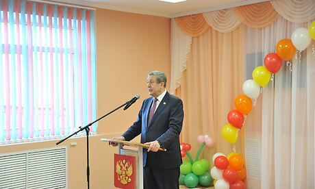 Я всех поздравляю с этим хорошим знаковым событием — открытием детского сада! Желаю здоровья, благополучия, успехов, чтобы детки вас радовали! У меня у самого уже четверо внуков, и это радость для любого человека — оставить после себя потомство, но еще очень важно потомство это воспитать, привить любовь к своей семье, родителям, малое родине. У нас с вами самая большая страна в мире, самая богатая, самая успешная, мы — великий народ, мы — великое поколение, нам есть чем гордиться: своей страной, предками, которые во все времена были первыми в мире. Мы должны это передавать нашим детям, чтобы они тоже были наследниками великого поколения. Еще раз желаю вам всего хорошего, счастья и благополучия! С праздником!
