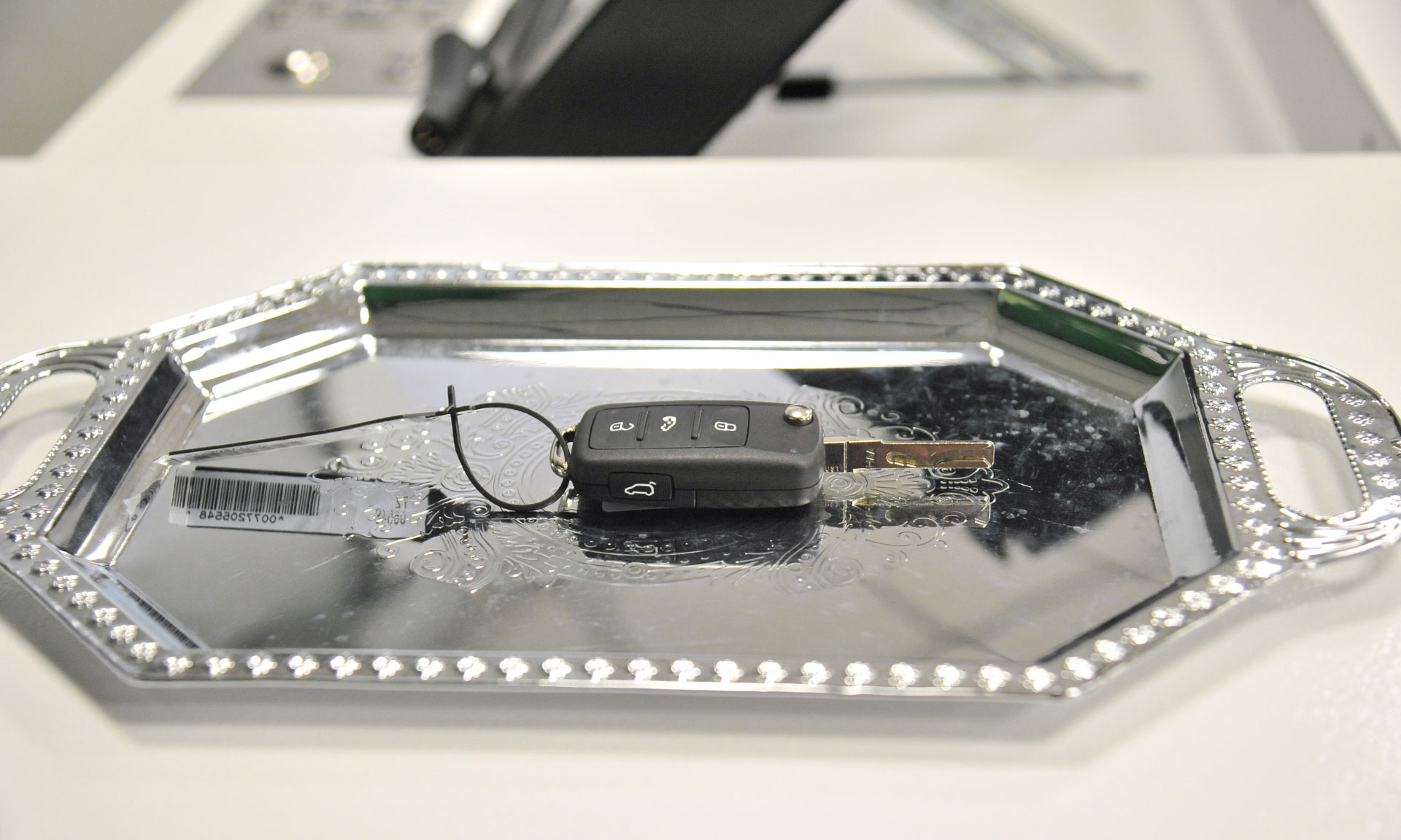 Александр Богомаз вручил директору детского технопарка «Кванториум» Александру Андрияшкину ключи от автомобиля.