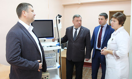 Главный врач ГБУЗ «Навлинская ЦРБ» Олеся Пулина рассказала о том, какие ремонтные работы в рамках национального проекта «Здравоохранение» были проведены и какое оборудование было закуплено. Владимир Оборотов совместно с директором департамента здравоохранения Андреем Бардуковым и главой администрации Навлинского района Александром Прудником осмотрели состояние и оснащённость диагностических кабинетов, в которых уже используется приобретенное в этом году оборудование. Также посмотрели помещение, в котором в ближайшее время будет установлен компьютерный томограф.